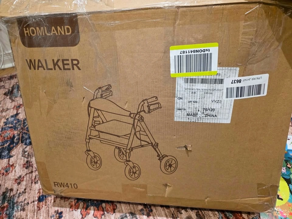 Brand new sturdy foldable frame with a comfortable seat and large wheels. It's lightweight and easy to fold for storage or transport, and includes a storage pouch and cup holder. Selling for $100. Pickup at Winston Churchill & Britannia (Mississauga). Cash preferred.