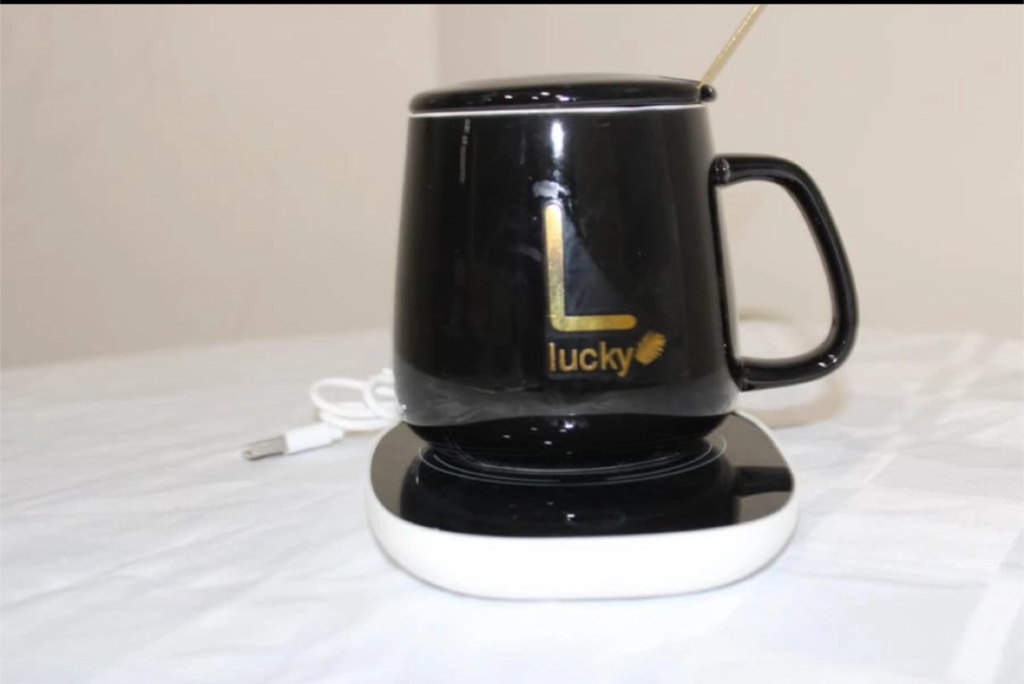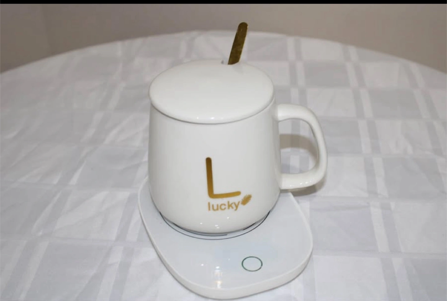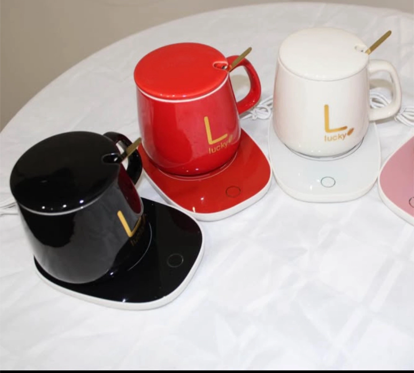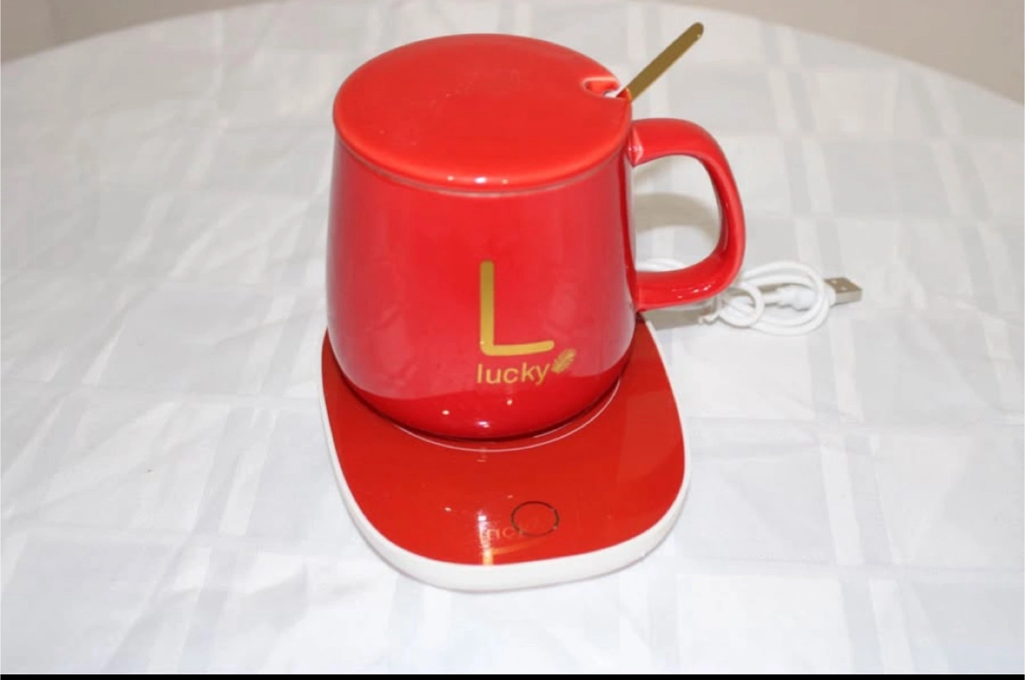 18Adorable ceramic mug warmer. Features a USB rechargeable base, matching lid, and small spoon. Available in black, red, white. Keeps your beverage warm.