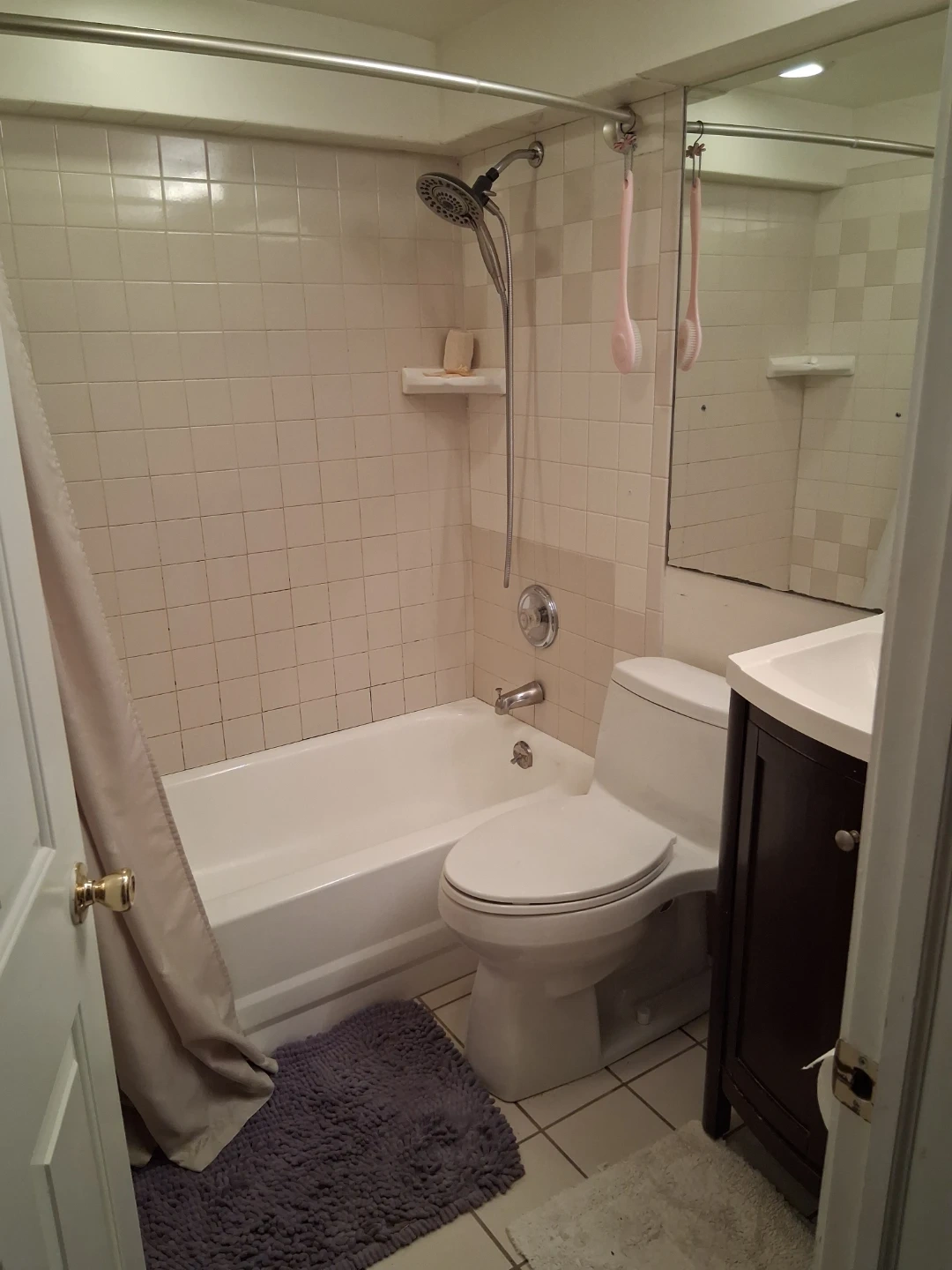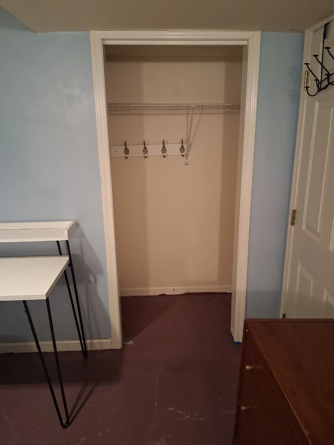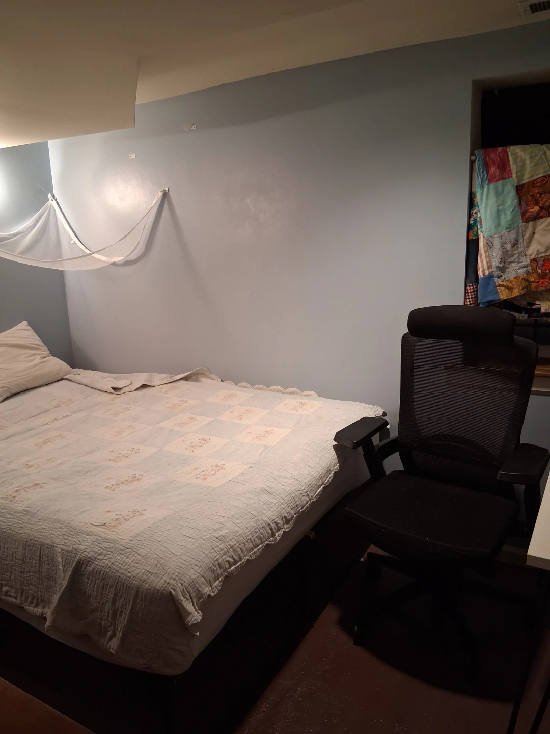 I pay the same rent, plus Electricity, Gas and Wifi, streaming as well, because I take up much of the space in the rest of the apartment. The full bathroom is 99% yours because I go in there to shower. I take my things back and forth. (Like dorm showers?) I use the 1/2 bath for me 100%. I also stay in my room a lot.