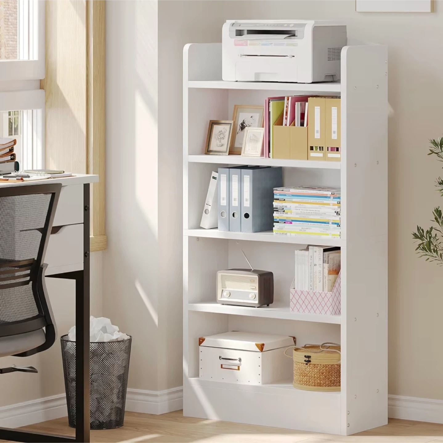 White 5-Shelf Bookshelf