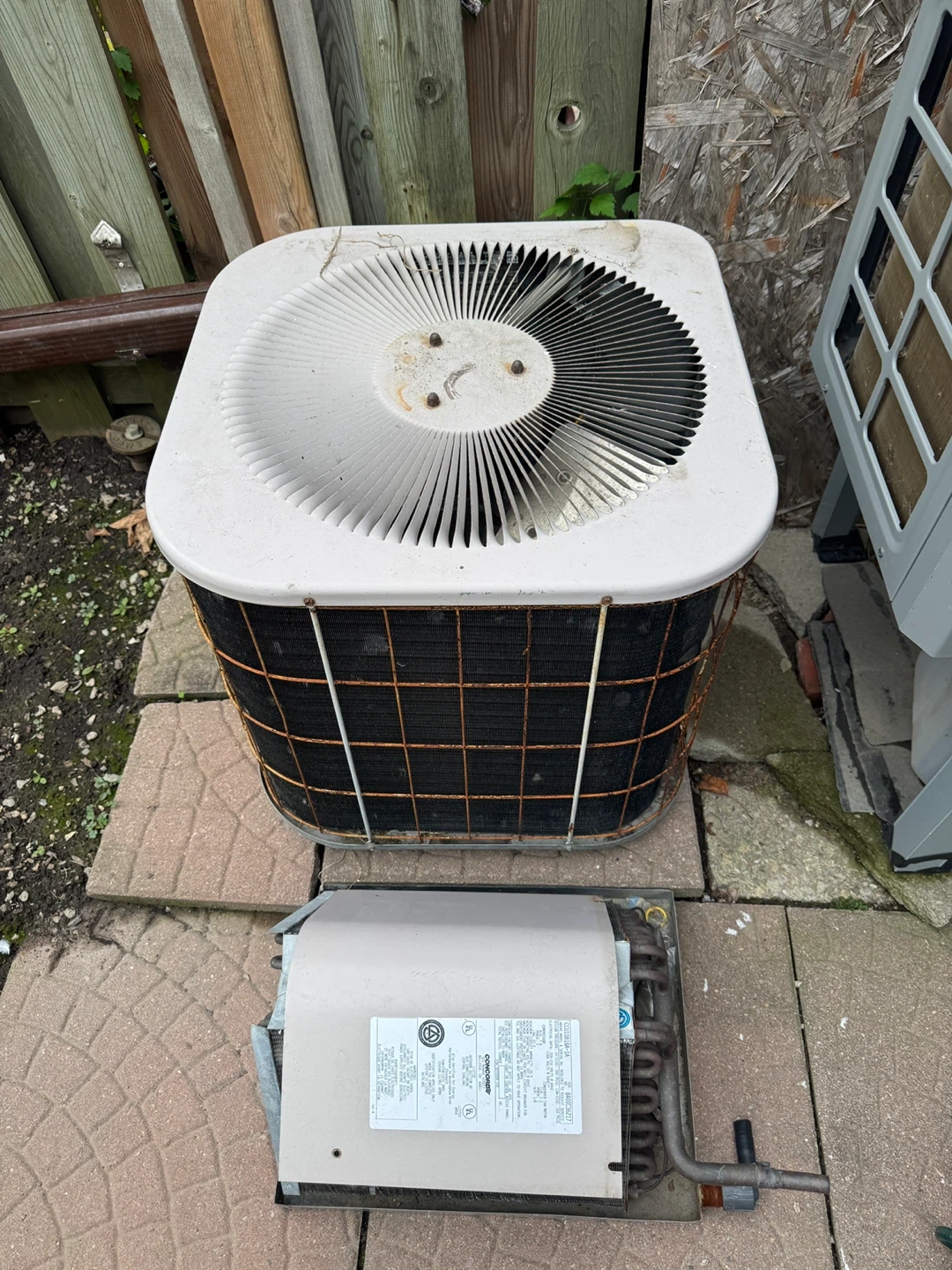 Selling a used central A/C condenser unit along with the matching indoor evaporator coil. Details: • Complete outdoor condenser and indoor evaporator coil set • Was working before removal • Coils and fan in good condition (see photos) • Suitable for residential home use