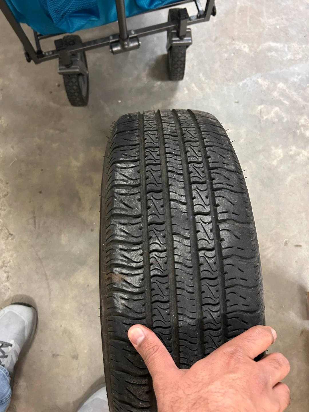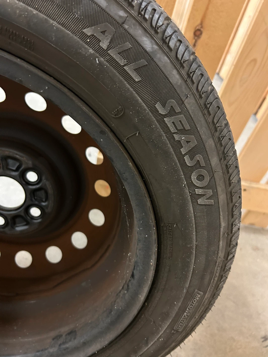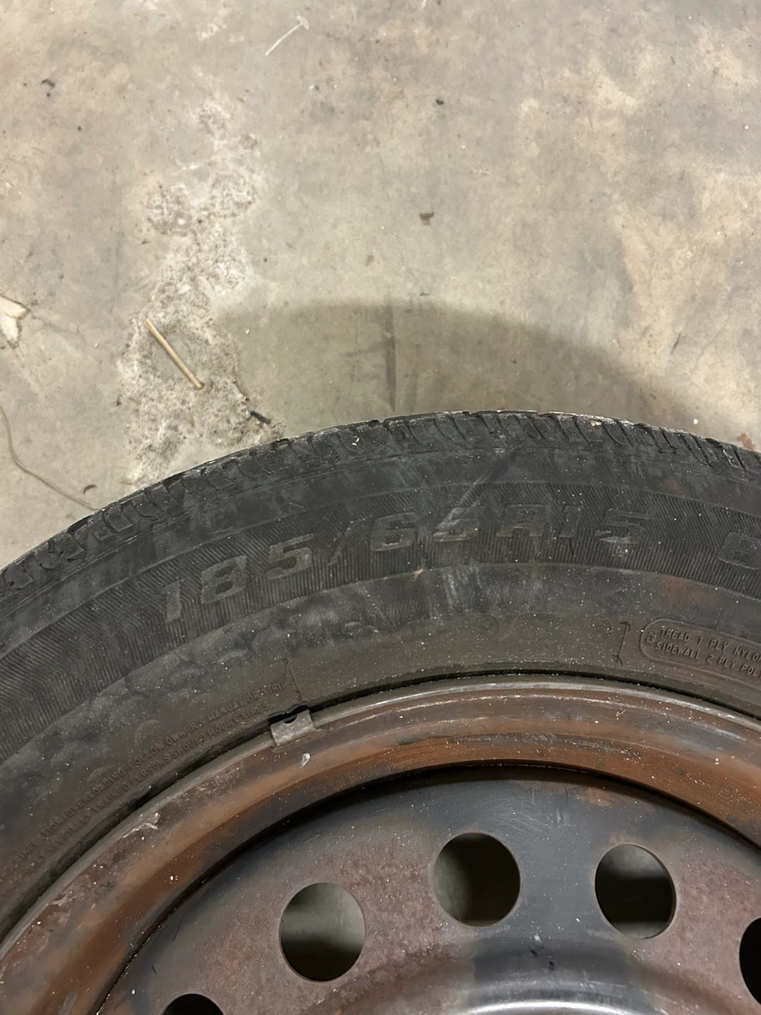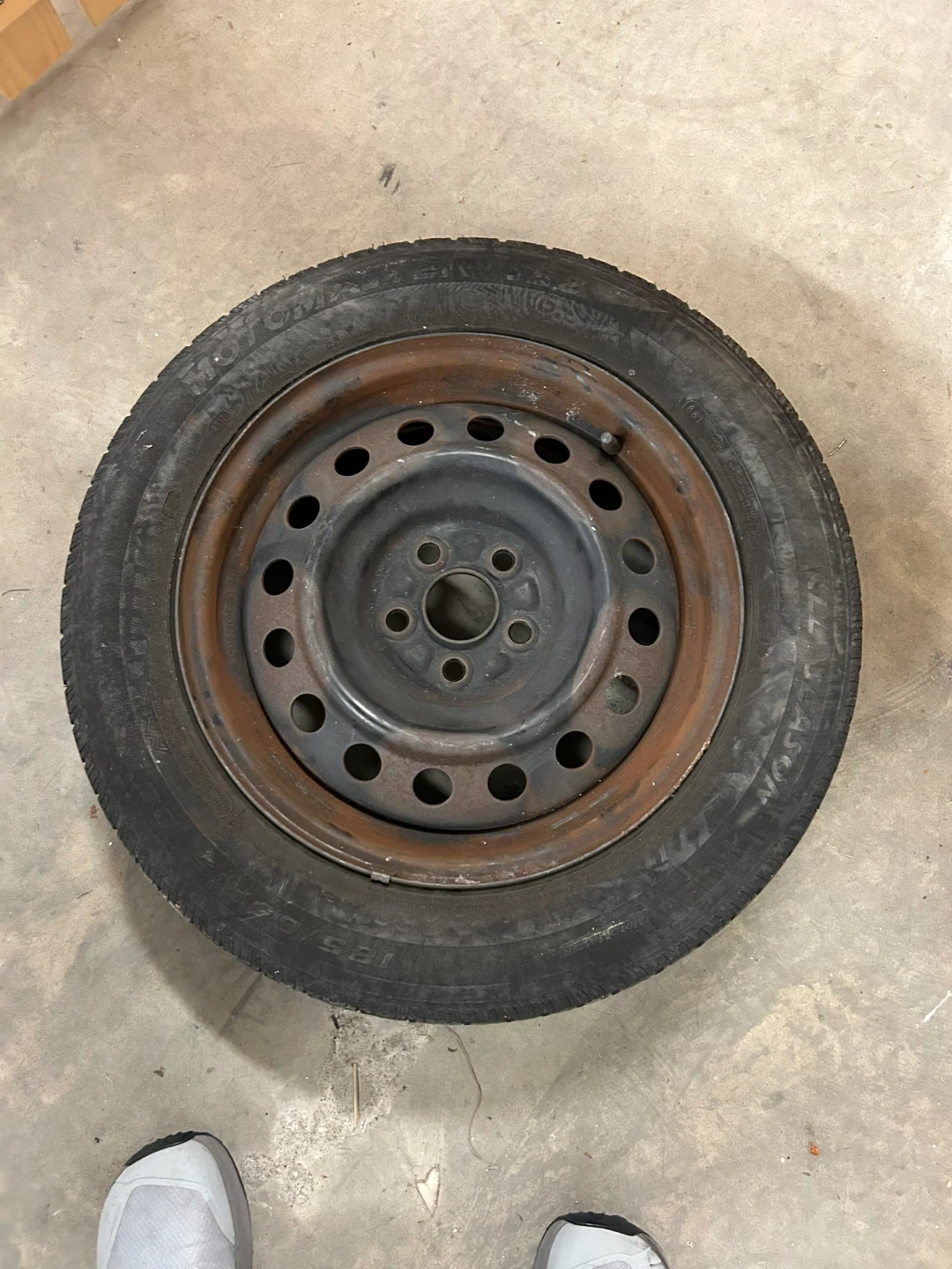Selling a used all-season tire with a size of 185/65 R15. It's mounted on a steel rim. Good for a spare or if you need a replacement!