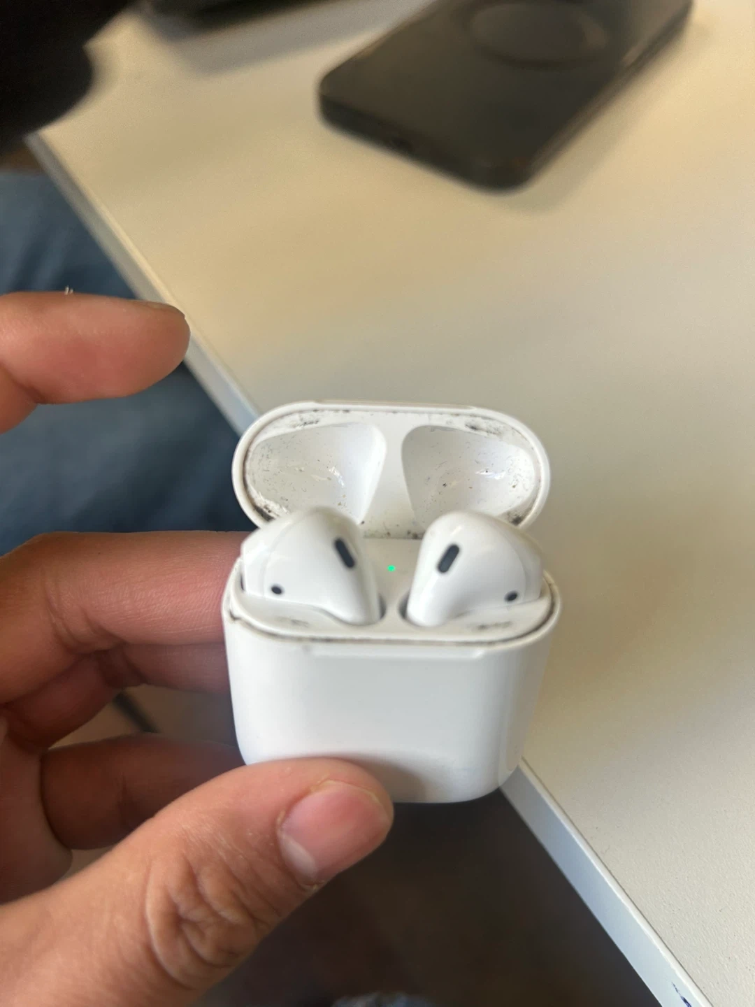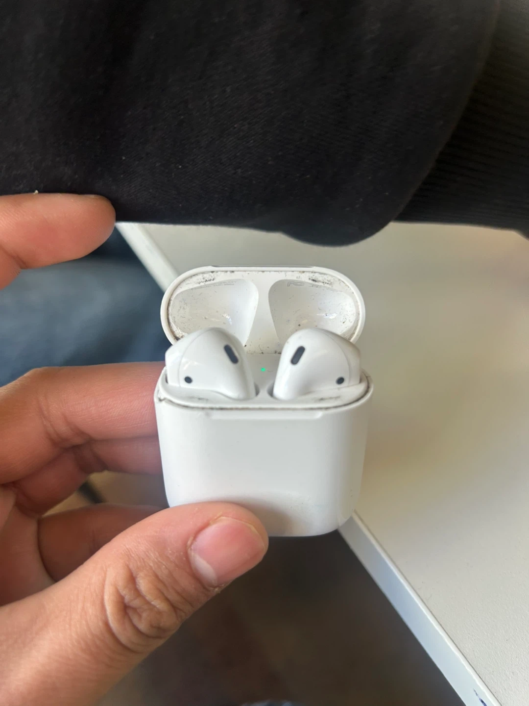 10Selling a pair of used Apple AirPods. They show signs of wear and tear, as you can see in the photos. Still work perfectly fine!