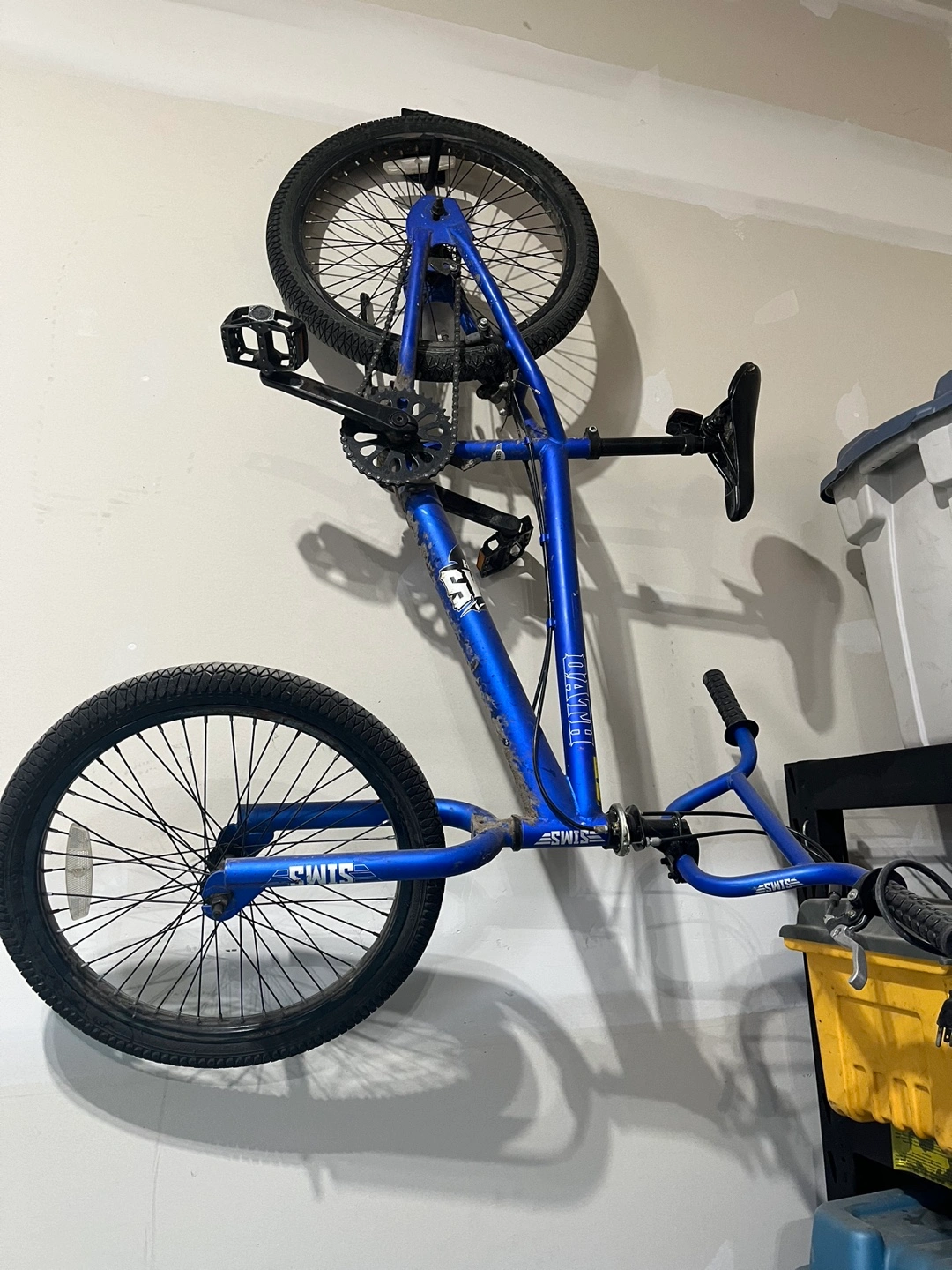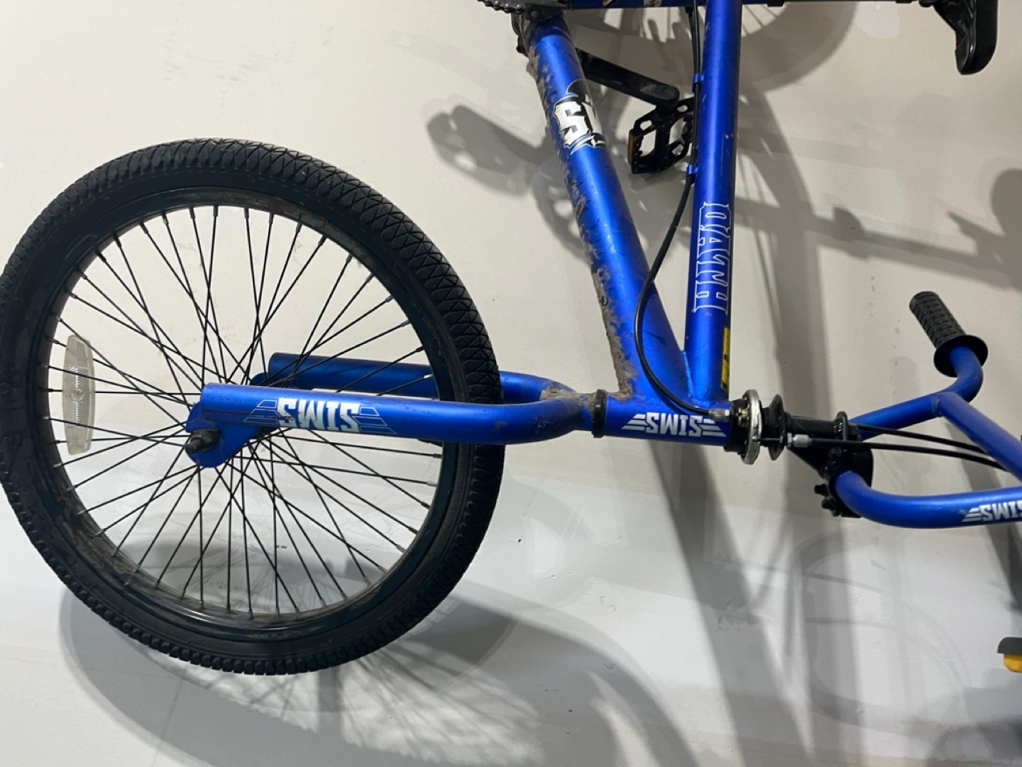 74Pre-owned Sims BMX bike. Blue frame. Shows some wear.