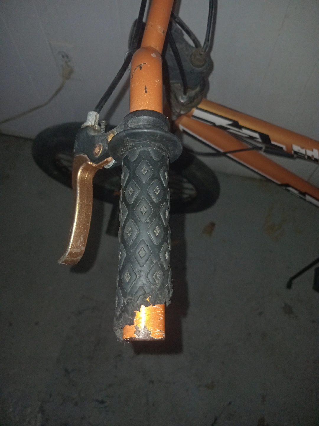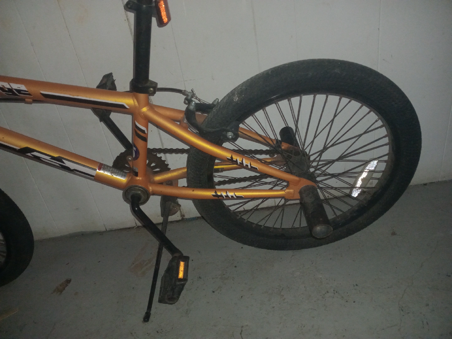 65Selling a used BMX bike in gold orange colour. It has some wear and tear on the handles, as shown in the pictures. The bike is functional, and would be great for someone looking for a budget-friendly option.