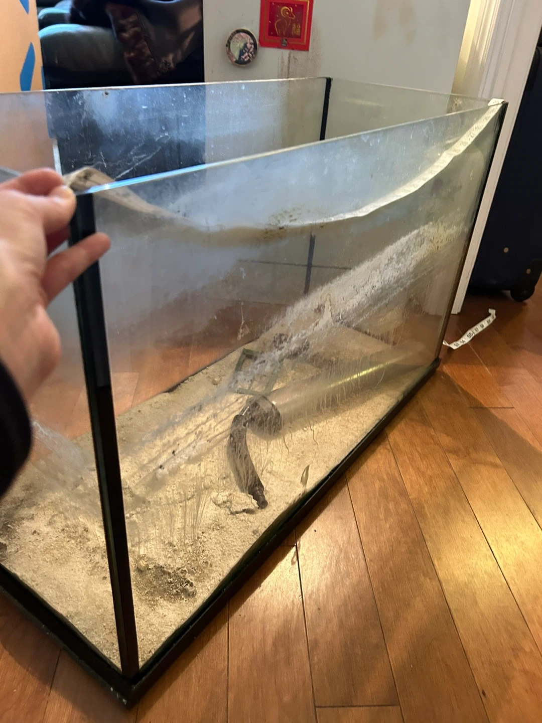 5Used fish tank or can be terrarium for reptiles. 30” across, 12” deep”, 18” high. As-is.