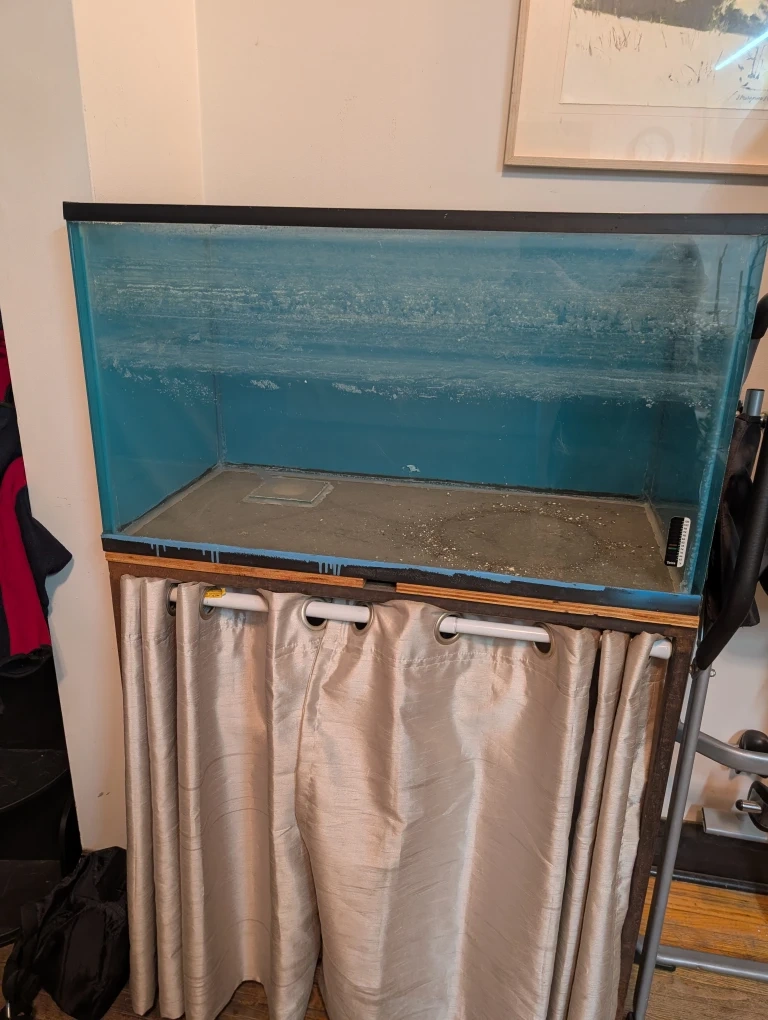 5Selling a used fish tank with a stand. The tank shows some signs of use, as seen in the pictures. It's a great setup for someone looking to start or upgrade their aquarium!