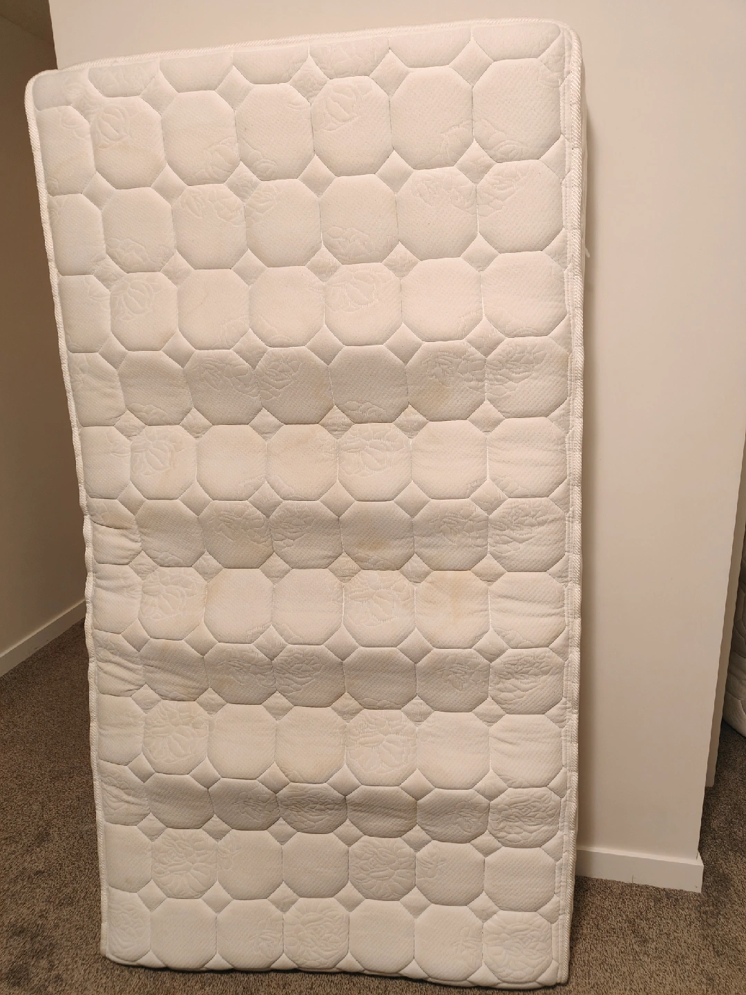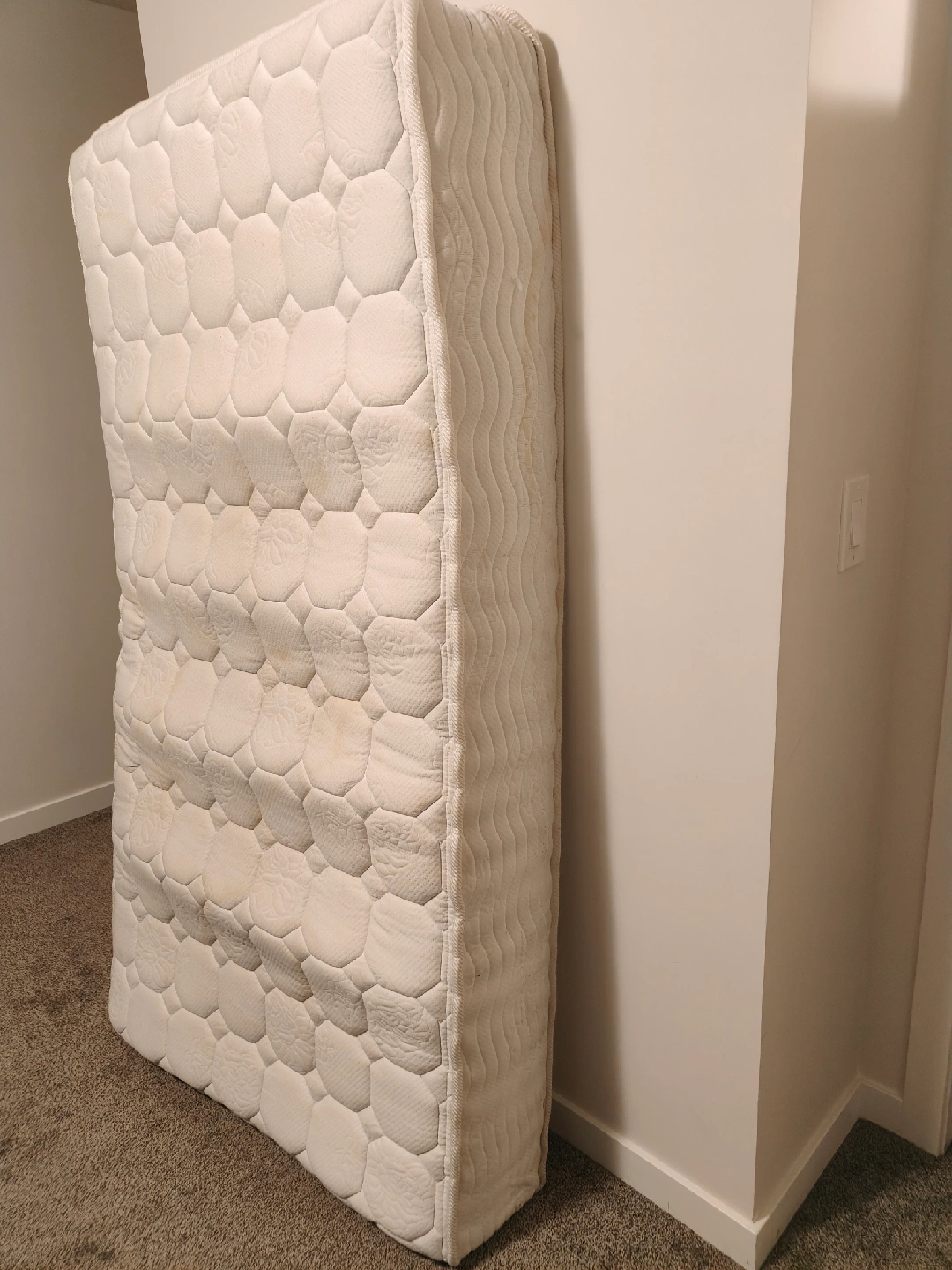 21Twin size mattress designed to fit one person comfortably and are ideal for smaller bedrooms or children's rooms. typically measure 39 inches wide and 75 inches long. Originally bought this for $280. Asking price is 80$ negotiable. I have another twin mattress with little stains which can be clubbed to a king size mattress if someone is looking for.