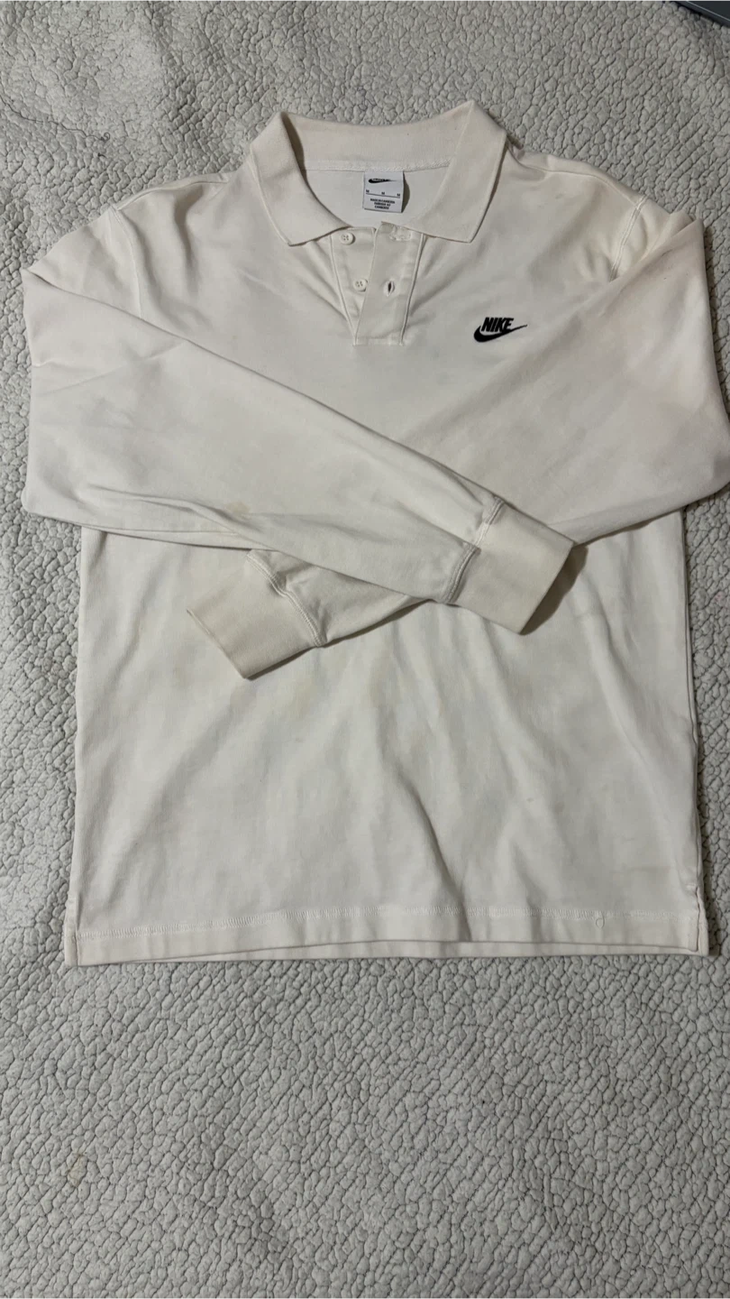 15Nike long sleeve polo shirt in size medium. It has the Nike logo embroidered on the chest. There are some signs of wear, as pictured.