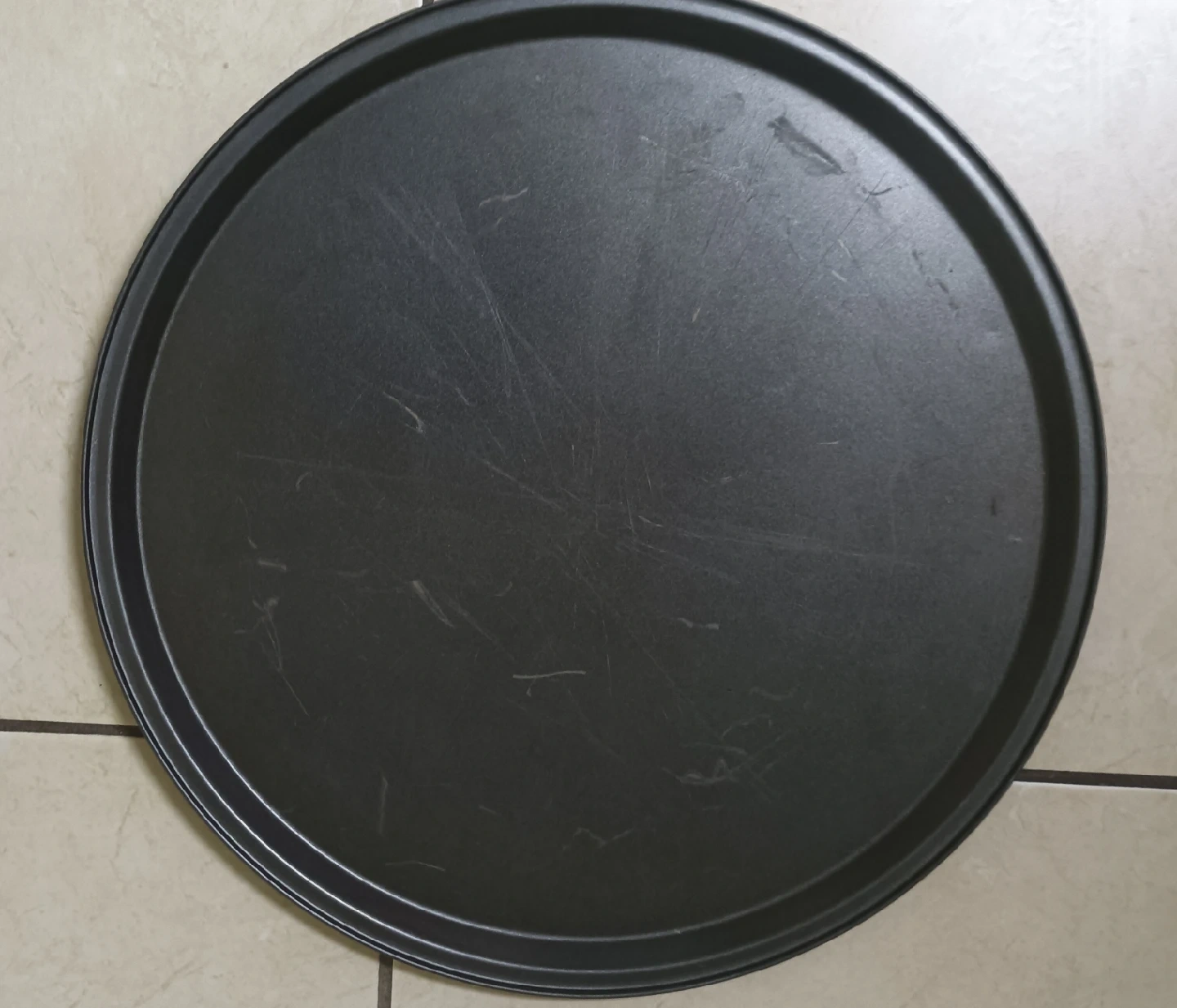 1000+Selling a used non-stick pizza pan. It has some scratches from use, but it's still perfectly functional for baking your favourite pizzas or other treats!