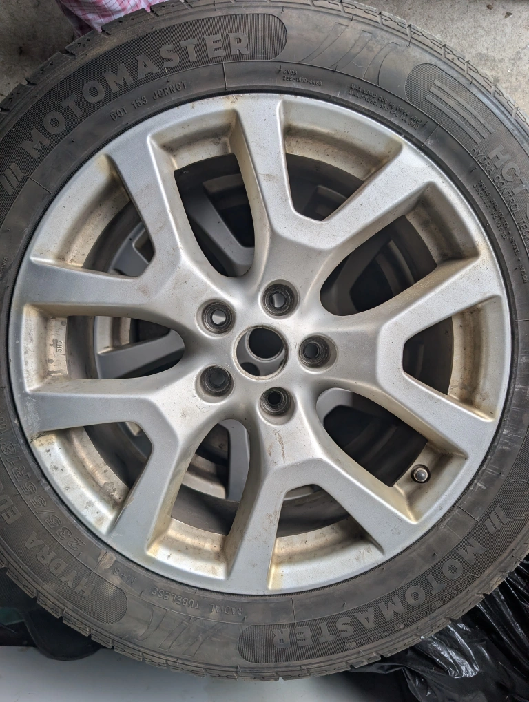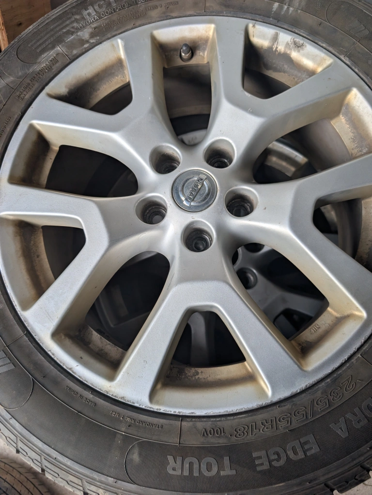 Selling four All Season Tires with a Spare 18inch Rim. 235, 55R, 18. Bolt Pattern 5x4.5inches Tires came off a Nissan Rogue.