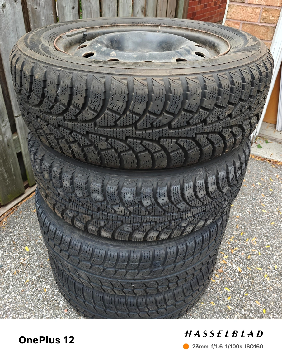 23Selling a set of four used winter tires with rims, 215/60/R16 used for Toyota Camry. They're in good condition and ready to get you through the snowy season! Please check the photos for tread depth and any wear and tear.
