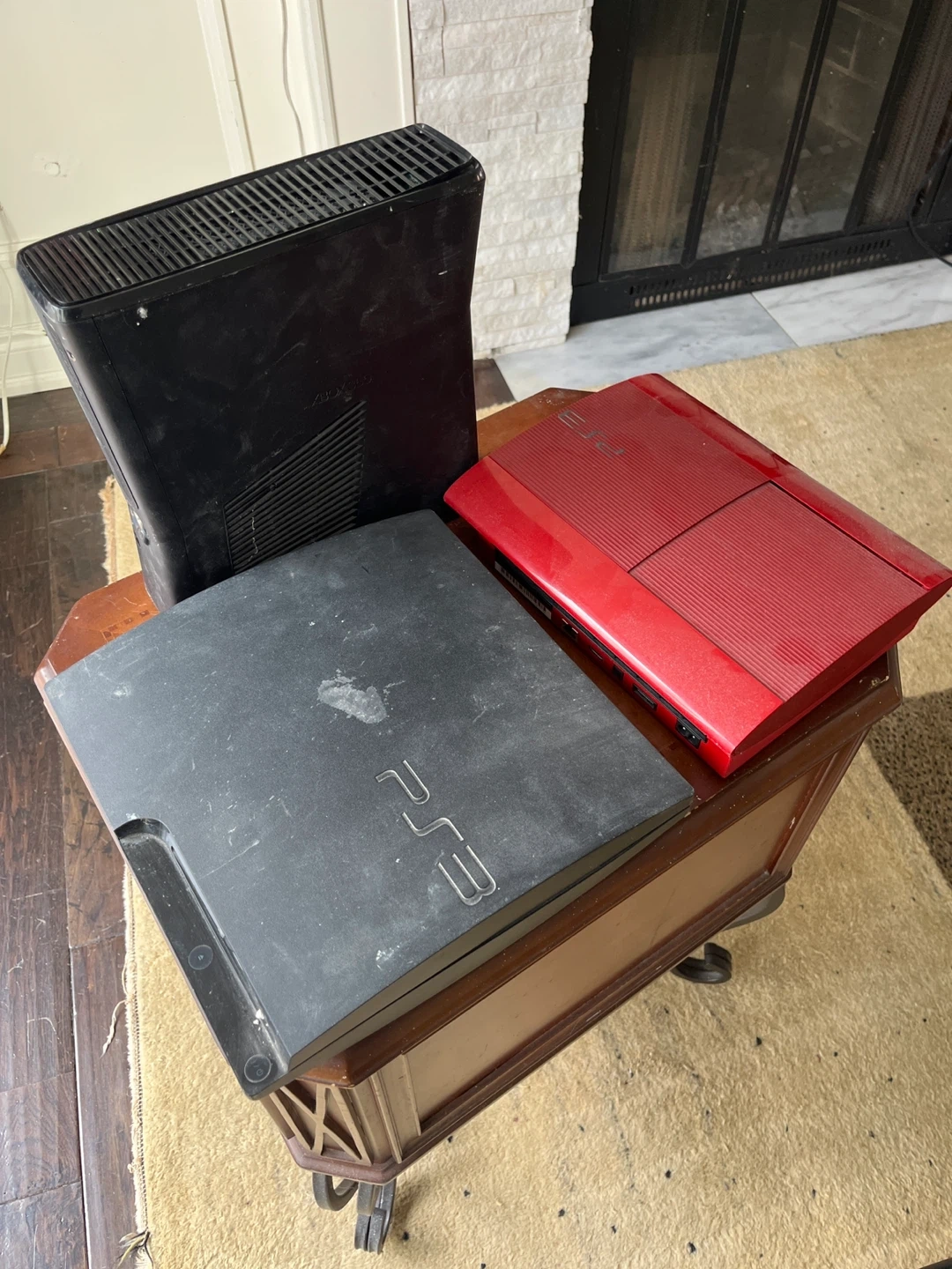 0Selling a used Xbox 360 and a PS3. Both consoles show signs of use and could use a good cleaning. Take all 3 Consoles for $100