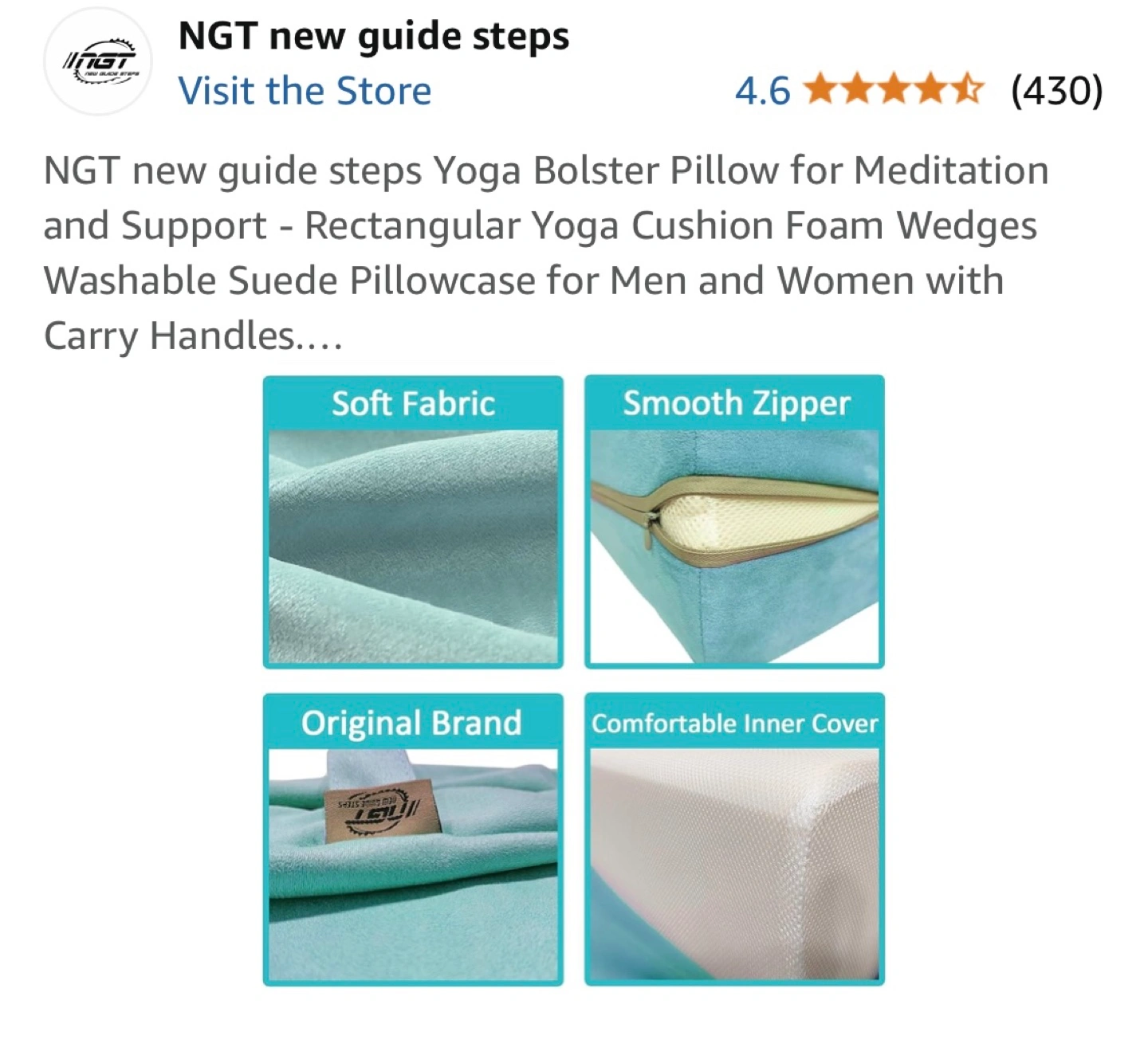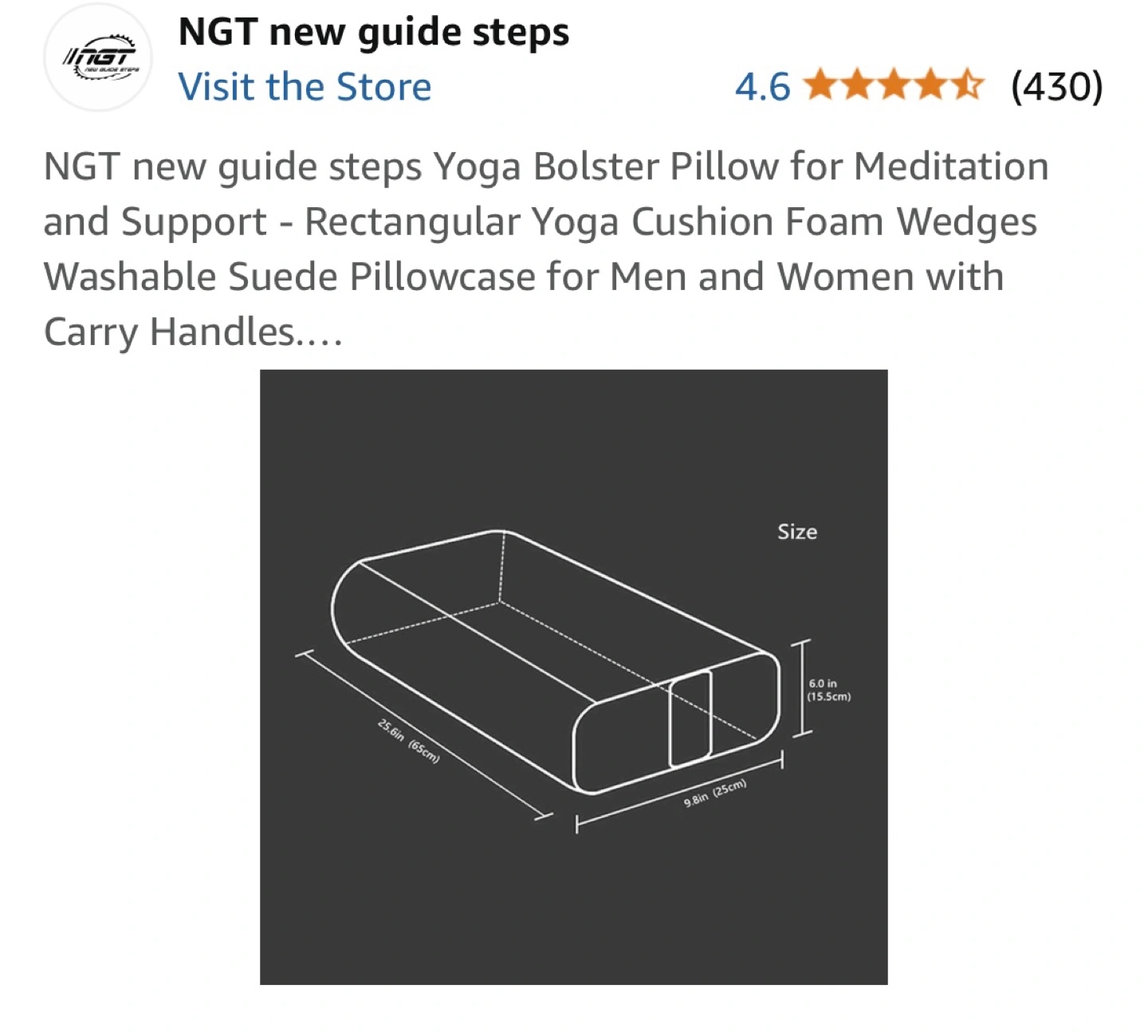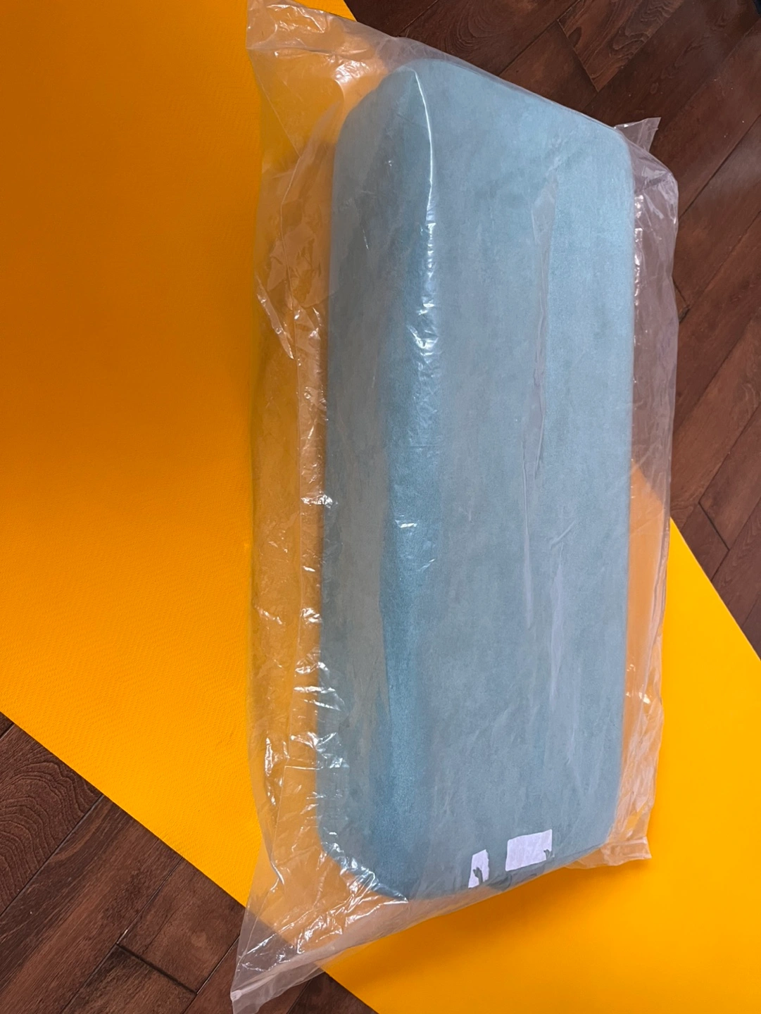 Rectangular yoga bolster pillow. Washable suede pillowcase. Foam wedges for support. Carry handles. Great for meditation and yoga.