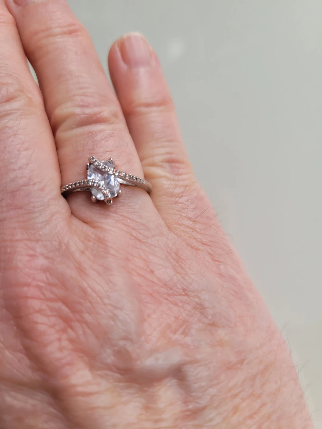 CZ faceted gemstone with smaller stones accenting the band. It's made .925 Sterling Silver sz 7.5 This would make a lovely addition to any jewellery collection!