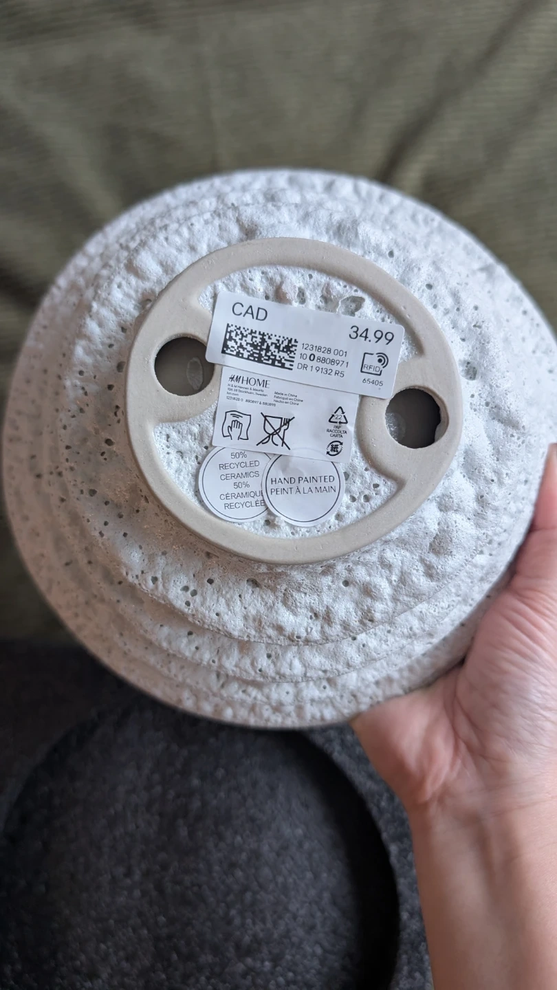 The H&M Home vase is handcrafted from 50% recycled ceramics. It's designed to look like a seashell.