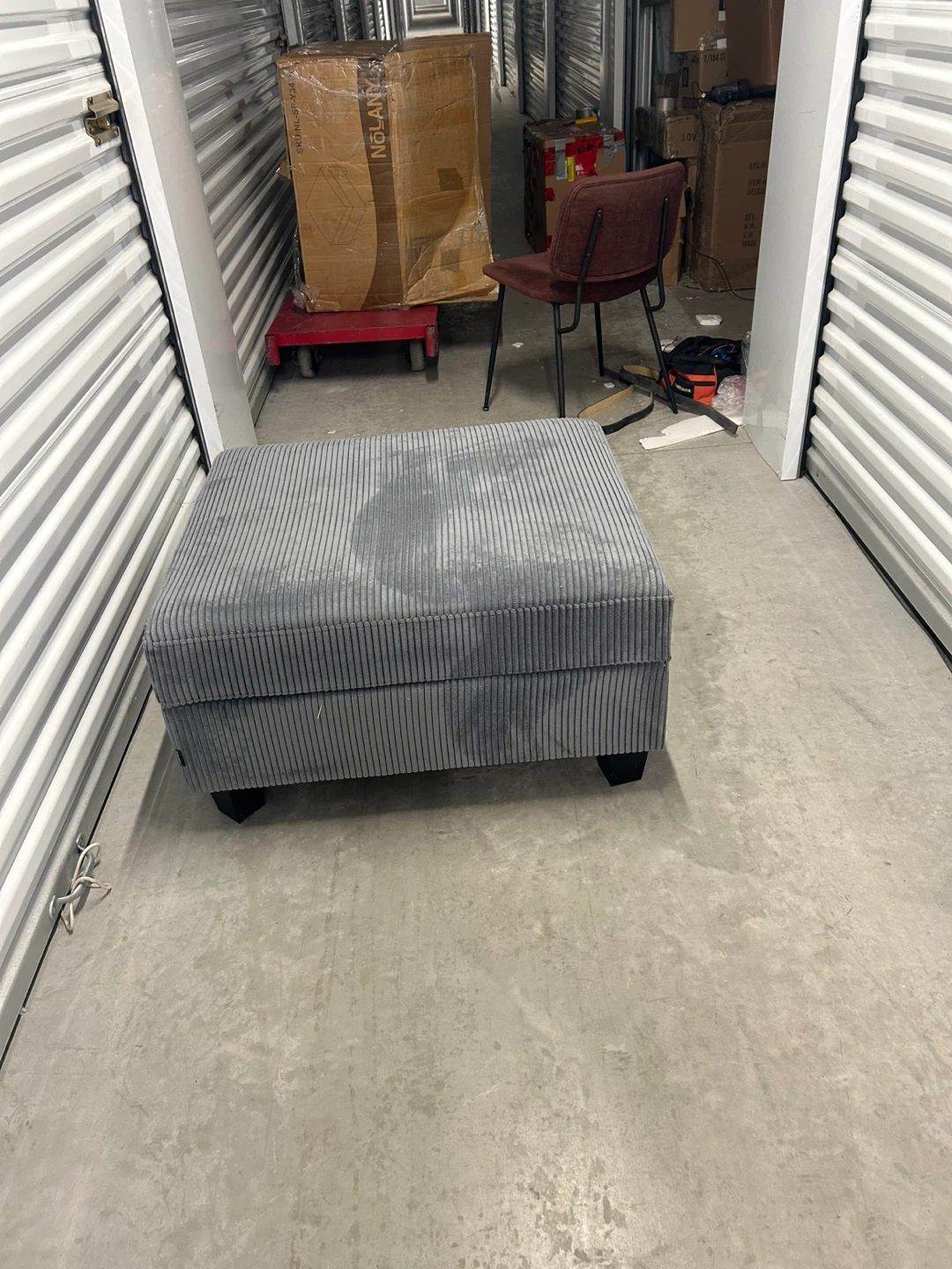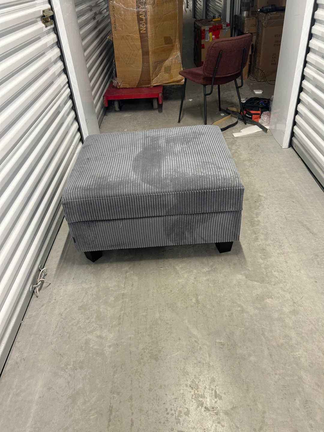 New Grey Corduroy Storage Ottoman 32X26X17 Inch