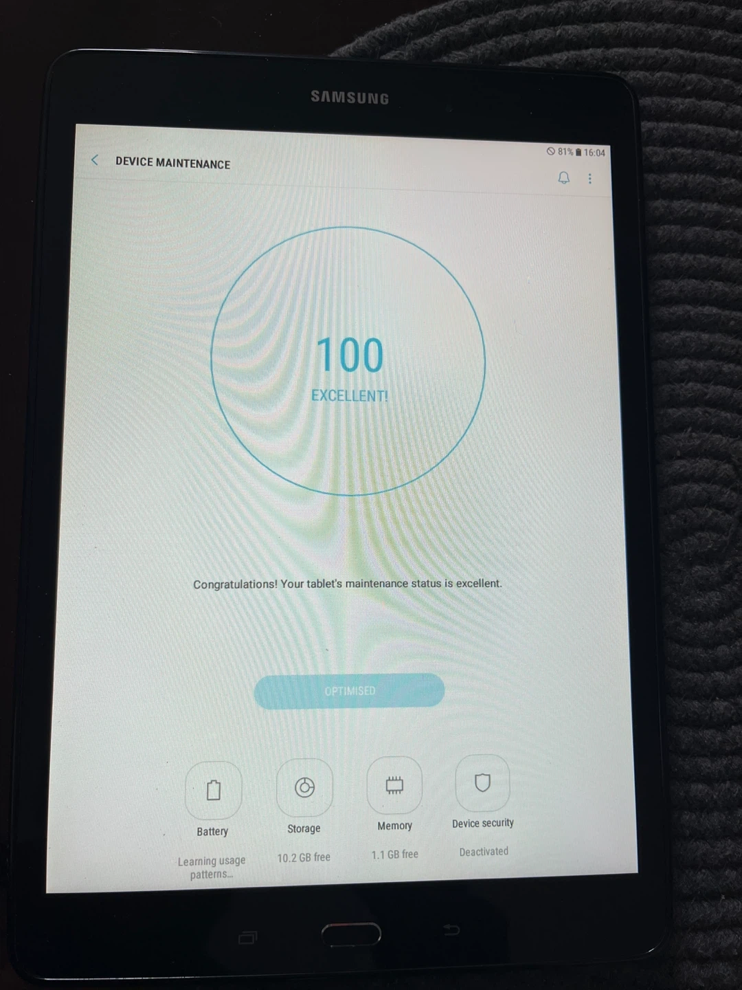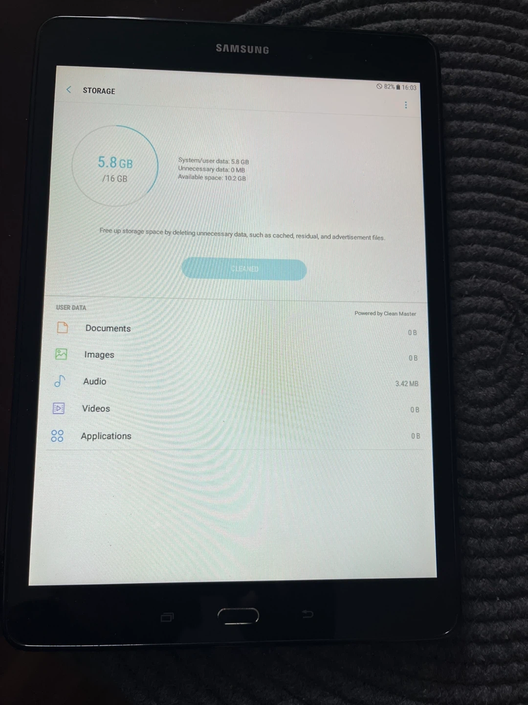 This is a Samsung Galaxy Tab A tablet. It has 16 GB of storage and the device is in excellent condition with 10.2 GB free. It's great for everyday tasks!