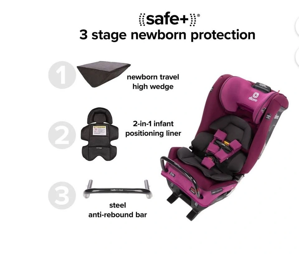 Diono Radian 3RXT All-in-One Convertible Car Seat in Purple Plum. Open box but never used. Everything is clean and in excellent condition. Rear-facing, forward-facing, and booster seat. One of the safest slim-fit car seats on the market. Fits 3 across in many vehicles. Steel frame design for extra safety. Easy to install. Selling for $300. Perfect for parents looking for a high-quality car seat at a great price. Pickup: Ajax. Also occasionally available in Scarborough.