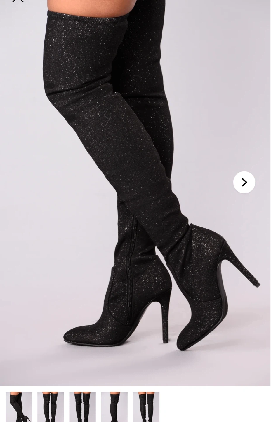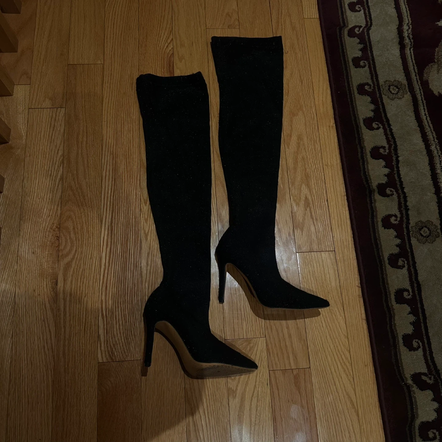 Black Sparkly Thigh-High Stiletto Boots