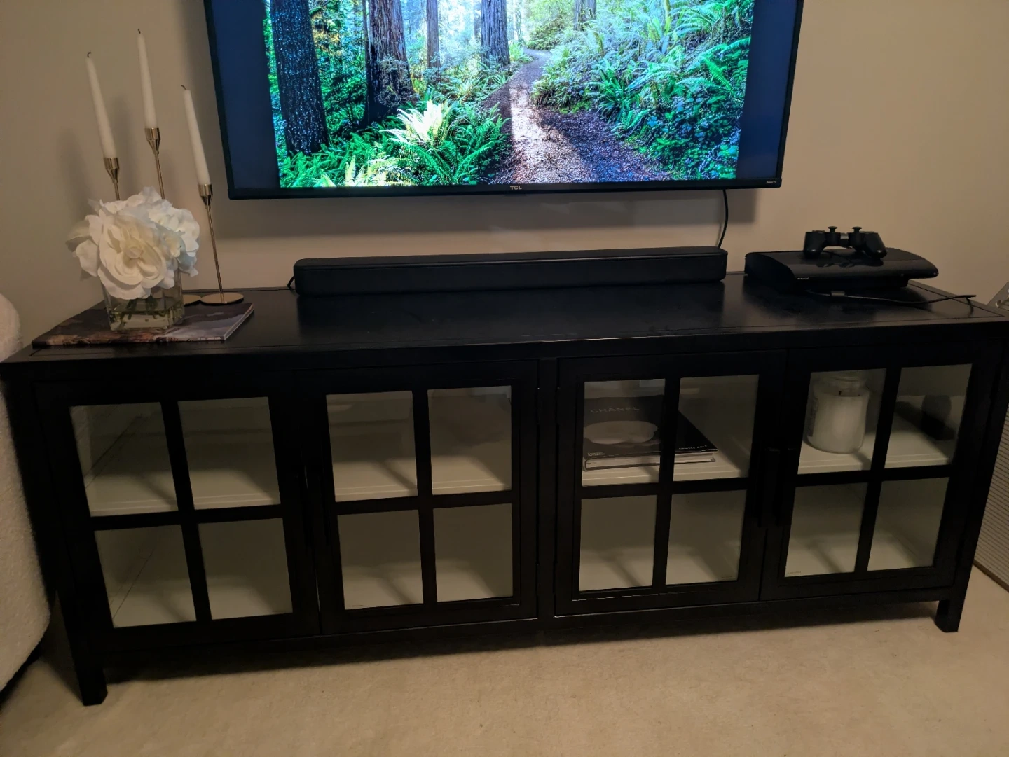 Pottery Barn Black Media Console with Glass Doors