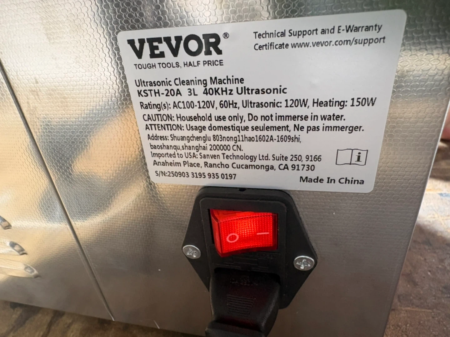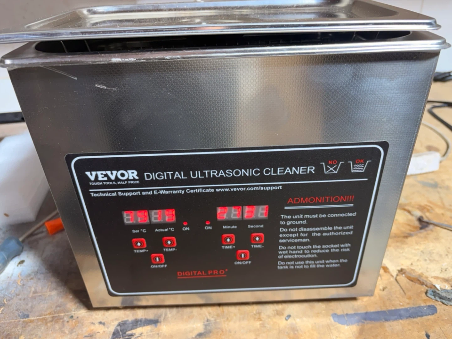 VEVOR Ultrasonic Cleaning Machine, 3L capacity, 40KHz ultrasonic frequency. It's 120W ultrasonic power with 150W heating power. Includes basket and lid. Perfect for cleaning small items!
