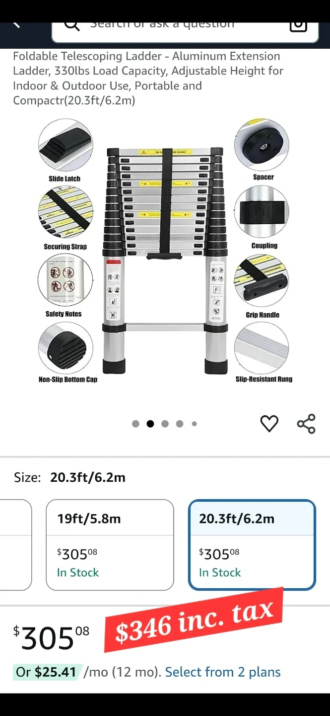 It's never been used and is still sealed. It is made of aluminum alloy, weighs ~16kg and the load capacity is 330 lbs. Rungs are slip-resistant and have self-locking feature. Don't ask for a lower price please, original price is $346.