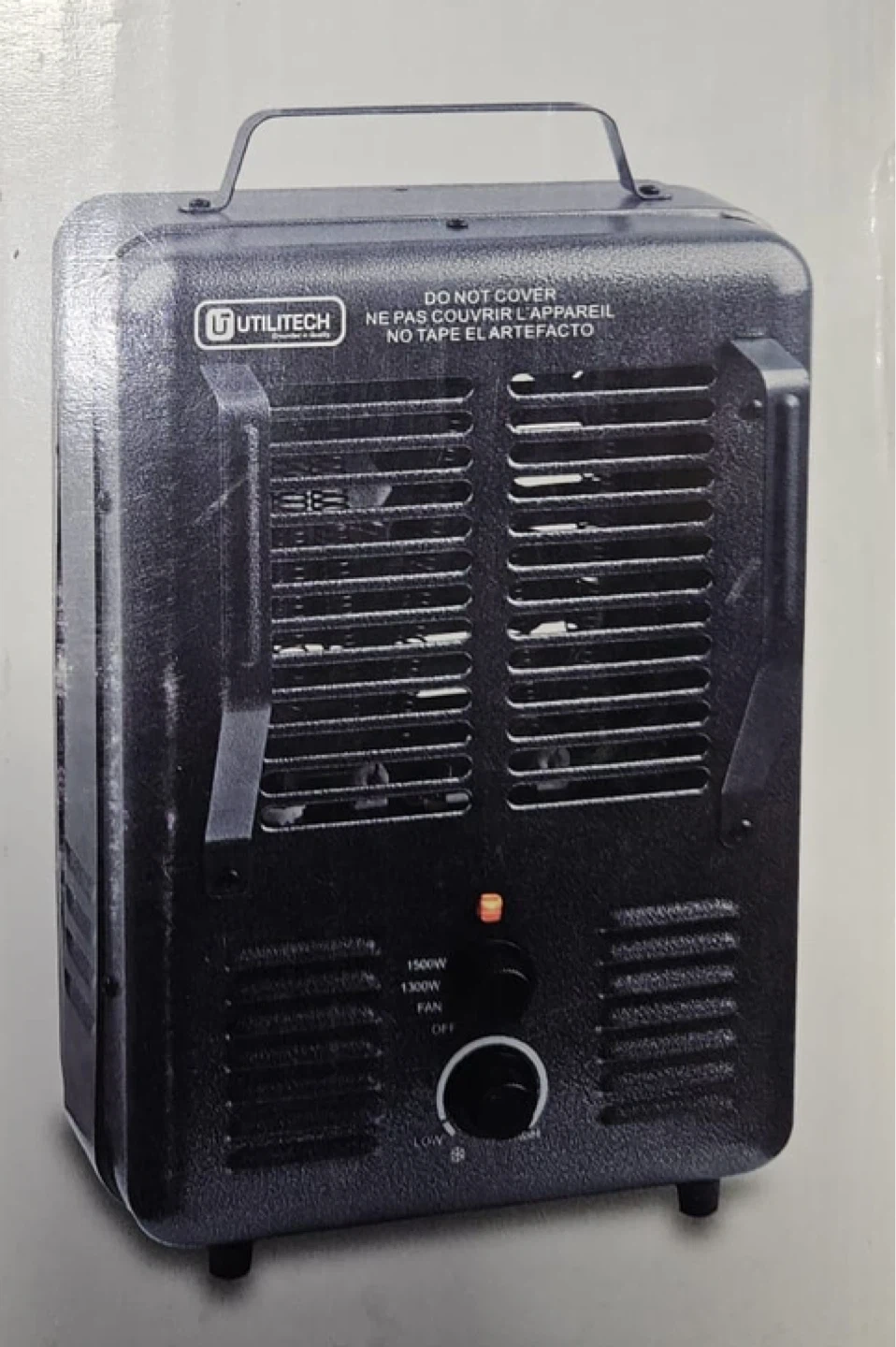 Selling a Utilitech fan-forced utility heater. It's 1500/1300 watts and in great condition. It comes with the original box. Model number is 3H-3013.