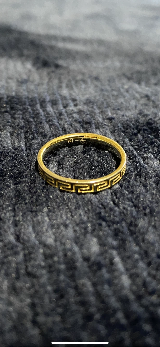 Selling a beautiful silver ring featuring a Greek Key design. The ring is marked with '925', indicating it's made of sterling silver with gold plating. A very stylish and unique piece of jewelry! Open to offers