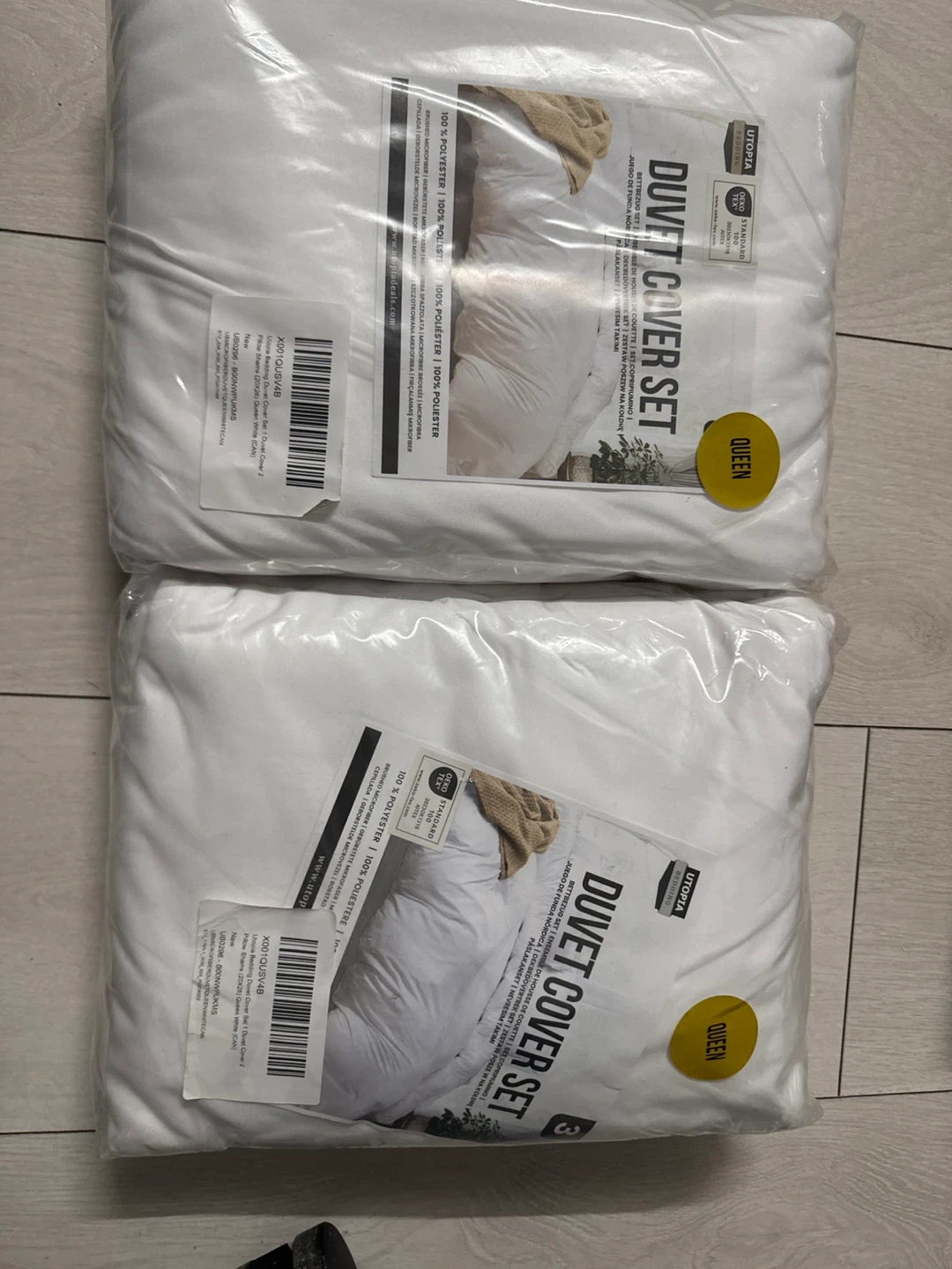 64I'm selling a brand new Utopia Bedding Queen size duvet cover set! It includes one duvet cover and two pillow shams (20x26). The set is white and made of 100% polyester brushed microfiber. Comes in the original packaging