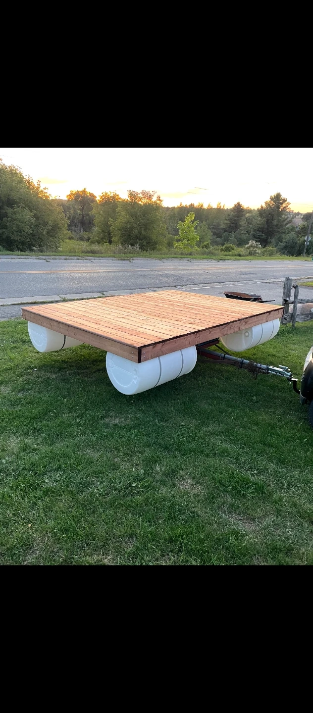 Brand New 8 ft x8 ft floating raft/dock. It is hand built with all pressure treated wood and metal reinforcements to make it strong and last a long time in the elements. I am asking $1500 obo. I can also build custom sizes just message me with the size you are looking for. You can mount a water slide on it for the kids or a picnic table for a romantic dinner on the lake! They can also be mounted to the end of your existing dock to make a relaxing sitting area. I can add anything to make it custom for your needs such as a ladder, dock pins to connect it to your existing dock, solar lights and boat tie downs to name a few fully customizable for your application.
