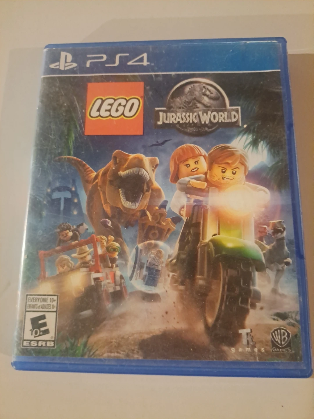 LEGO Jurassic World for PlayStation 4. It's a fun game that combines LEGO elements with the Jurassic Park franchise. Rated E for Everyone 10+ by ESRB.