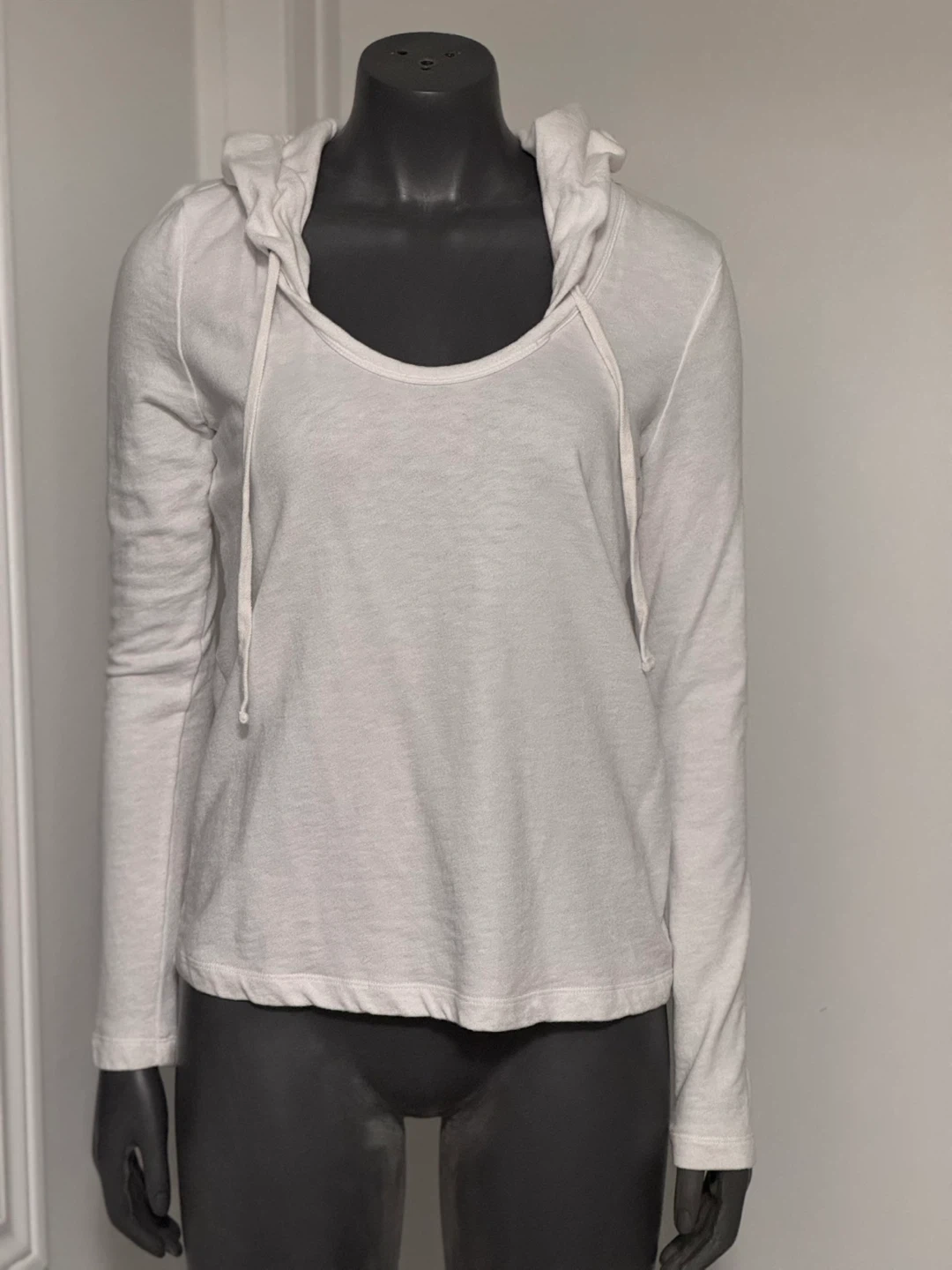 White long sleeve hooded top by James Perse. Made in Vietnam. Size is 2. NWOT and never worn