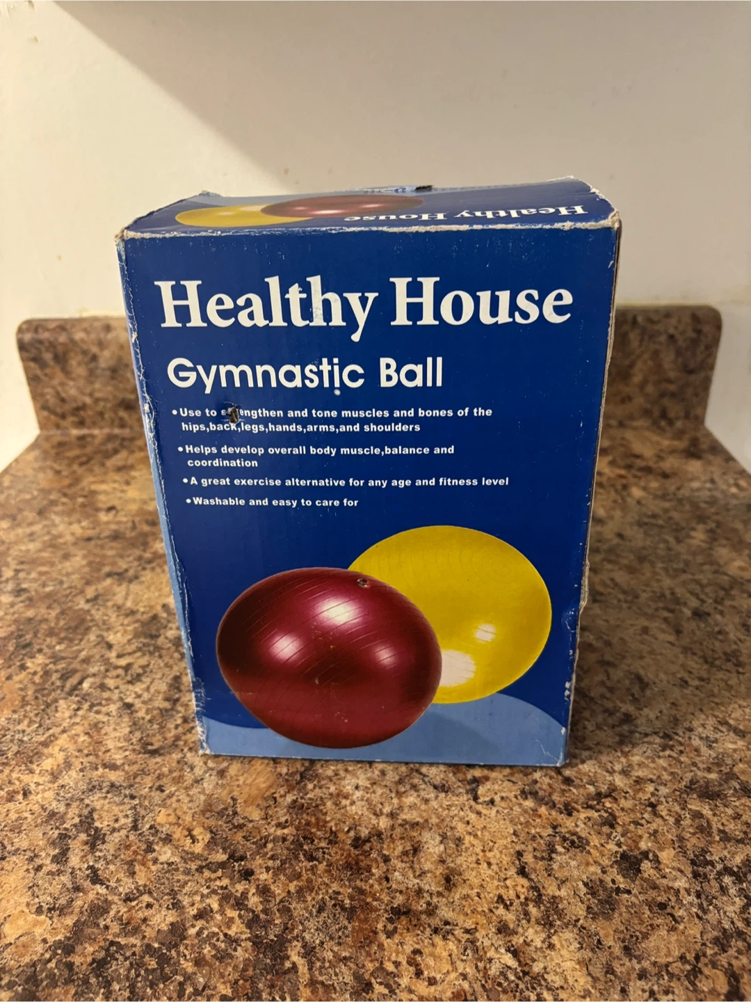 Healthy House Gymnastic Ball for strengthening and toning muscles and bones. It helps develop overall body muscle, balance, and coordination. A great exercise alternative for any age and fitness level! Washable and easy to care for.