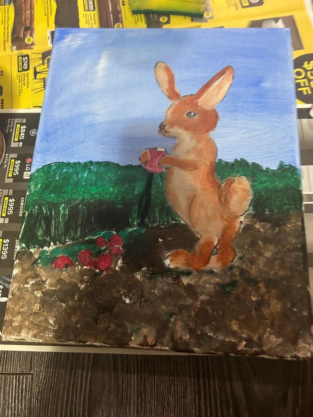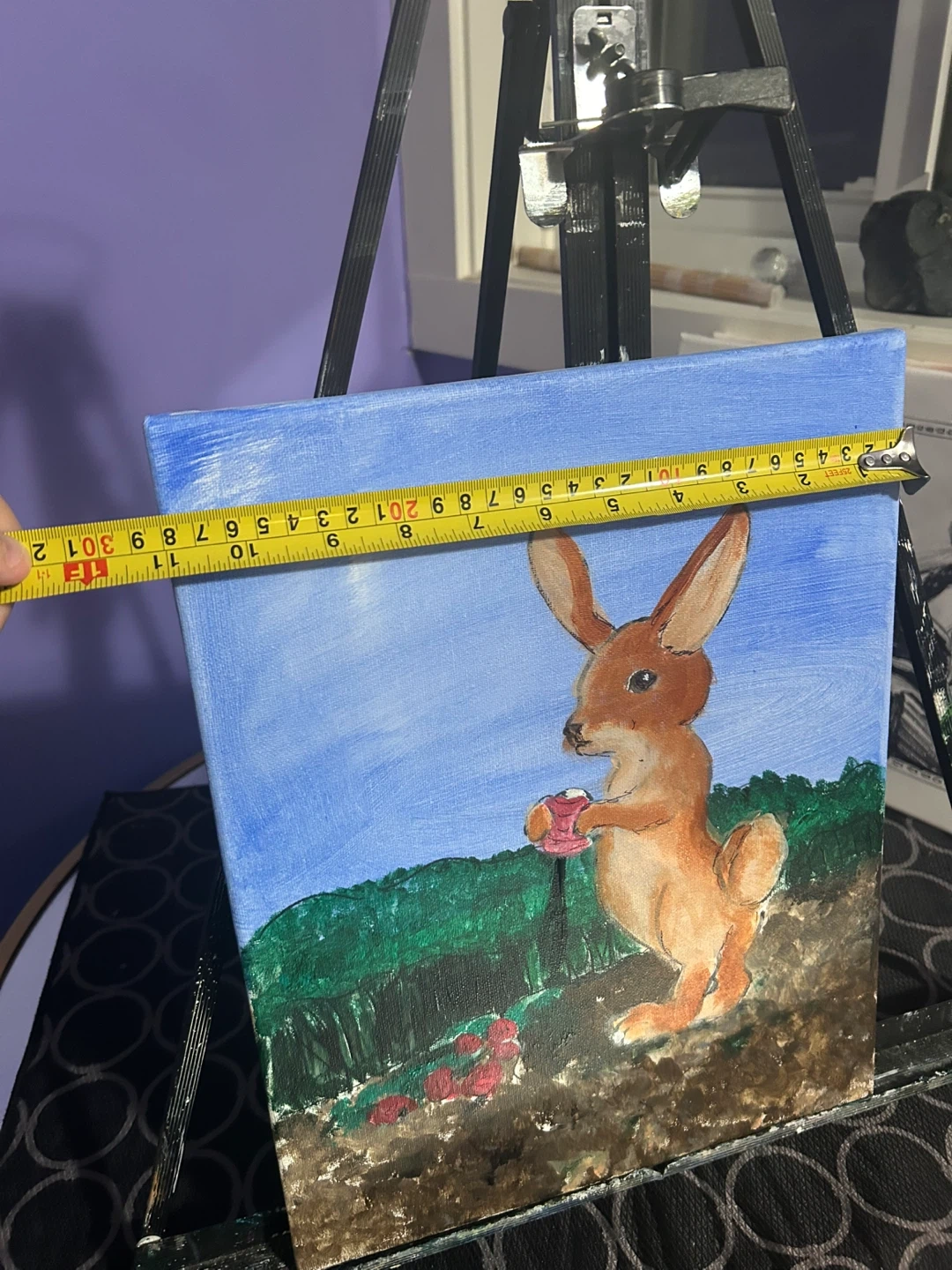 11x14 inch acrylic painting of a rabbit eating a red beats. Stealing them from some one’s garden. Cash or e-transfer only. Sorry no refunds. Payment to be made at pick up. Pick up place is A&W on 200st Langley