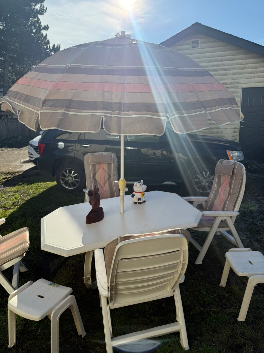 White Patio Set with 4 Chairs and Umbrella