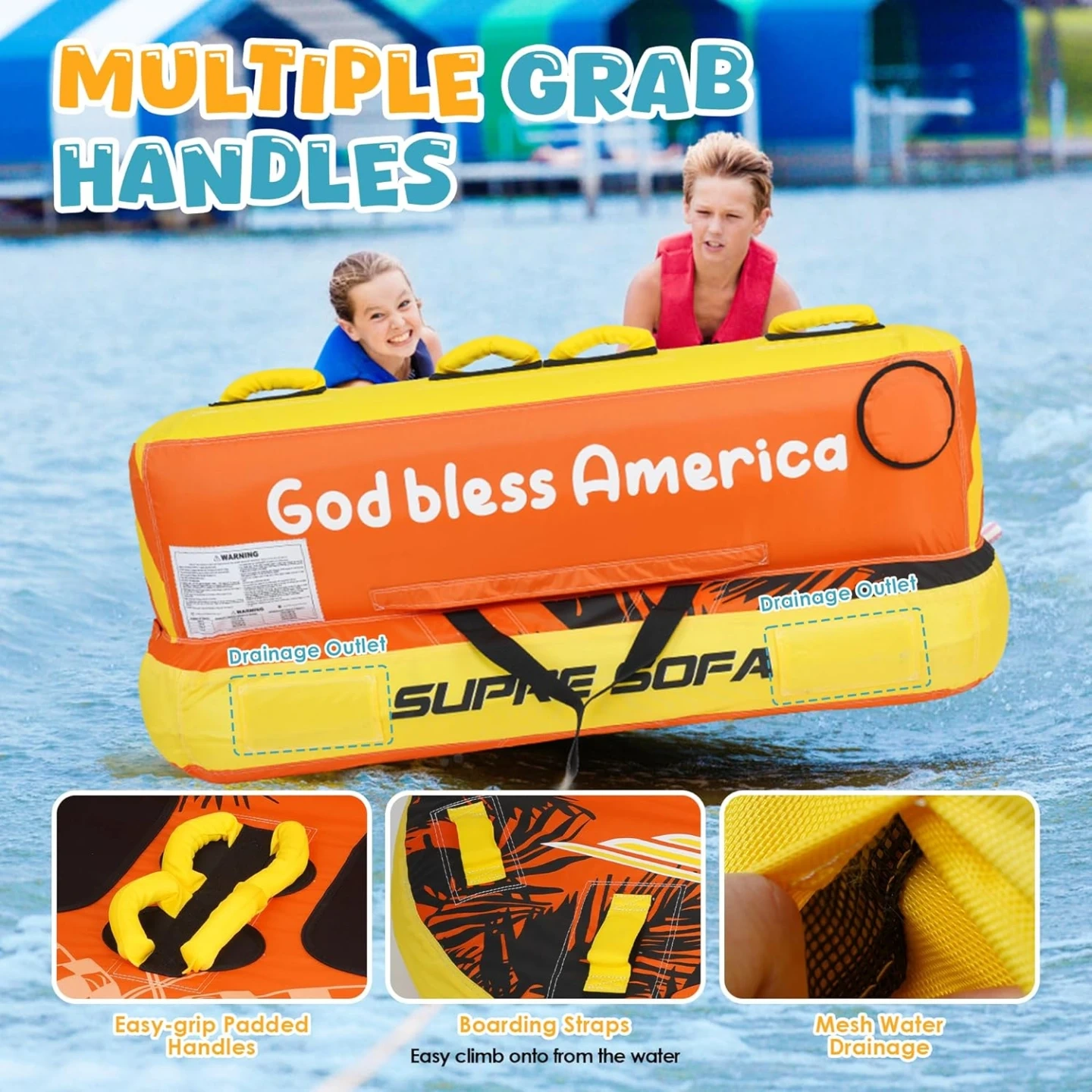 Heavy Duty Towable Tubes 840D Nylon & PVC. 450 Ibs capacity 2 person, 2-year warranty