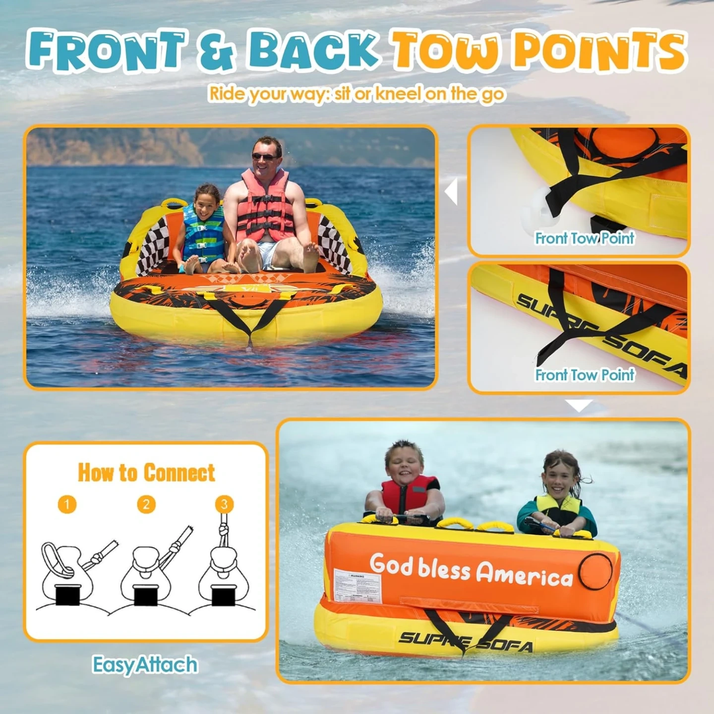 Convenient Traction Point: The towable tube has a front traction point that is easy to use. Pass the rope through the hole in the traction buckle to secure it quickly