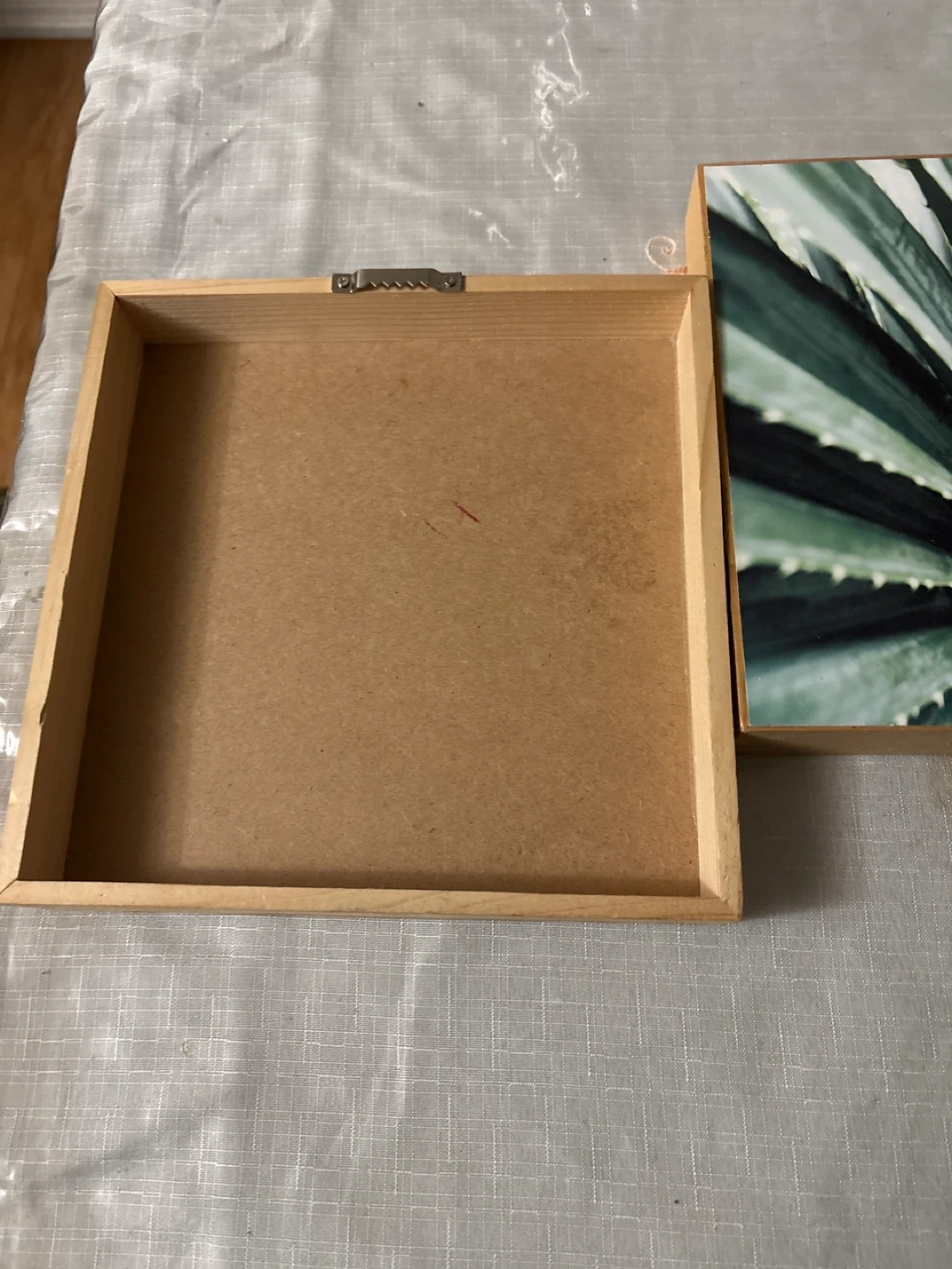 Two wood framed prints, one featuring a bamboo design and the other an agave plant. These pieces add a natural touch to any room. Each print is on a wood base with a wooden frame.