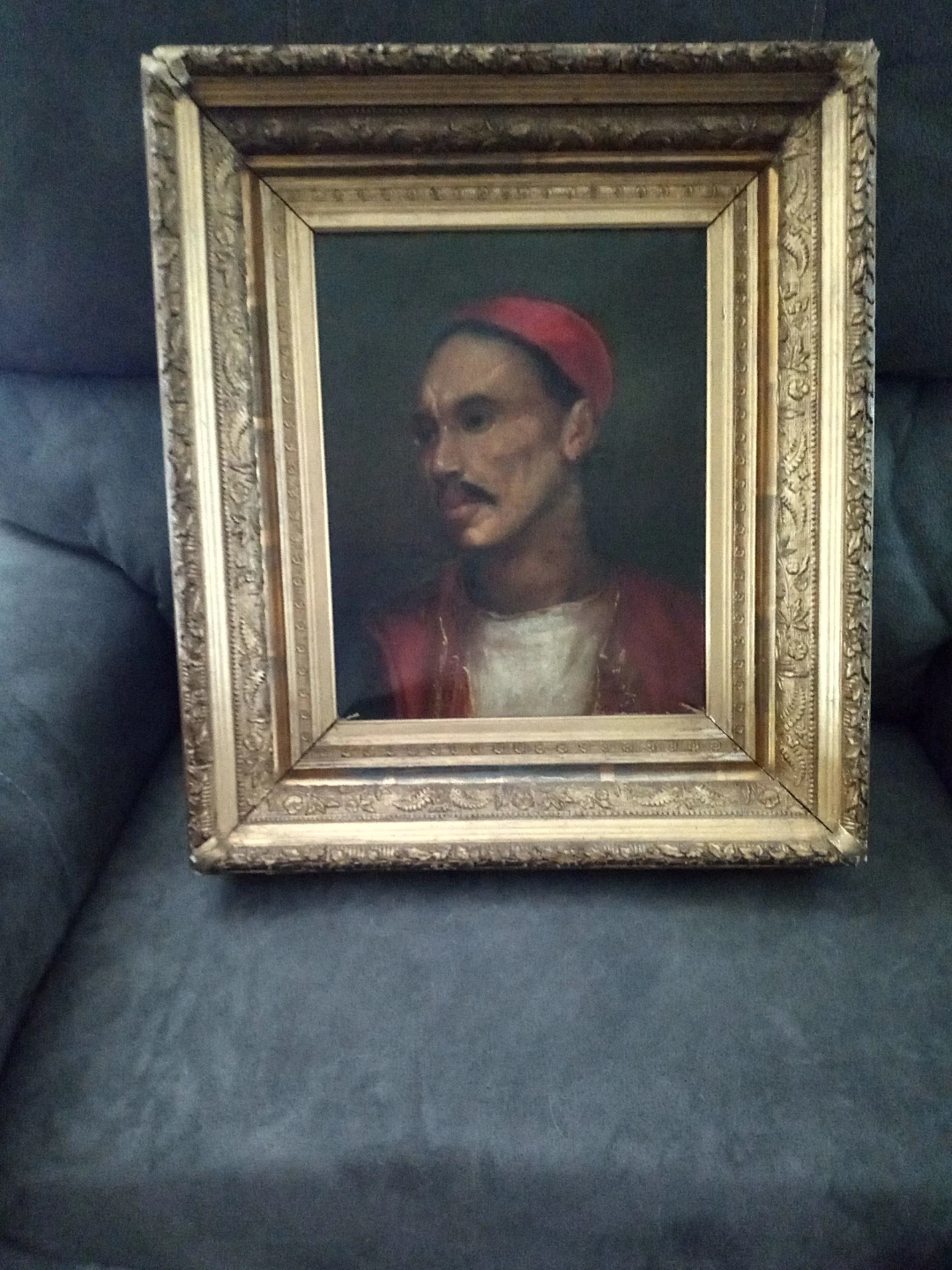 This is a portrait painting, believed to be by Horace Vernet, who died January 12, 1863. The painting is framed and signed "TOM PECK CUSTOMS". It's a unique piece for art collectors.
