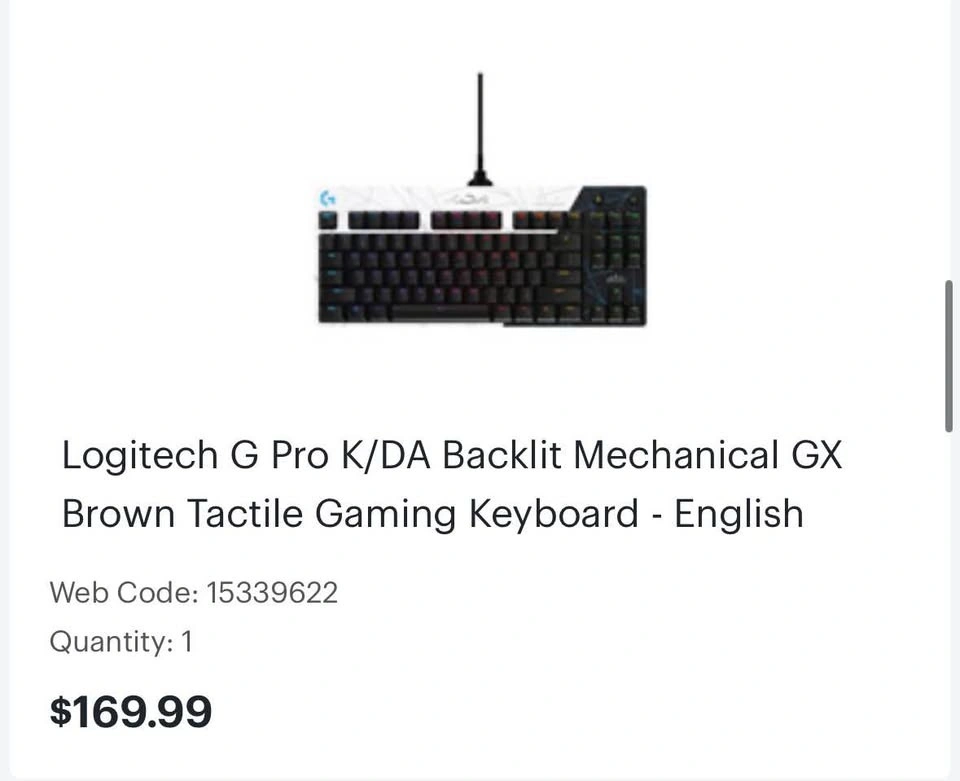 Awesome Logitech G Pro K/DA mechanical gaming keyboard. Has GX Brown Tactile switches, super responsive for gaming. K/DA edition with that unique design. Great keyboard for any setup.