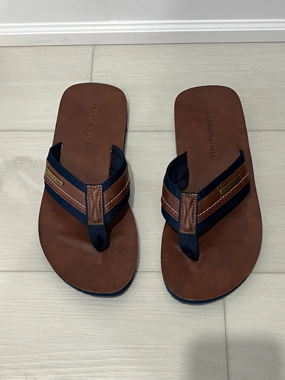 Tommy Hilfiger thong sandals in a medium brown colour. Men’s Size 8 (fit a little narrow)