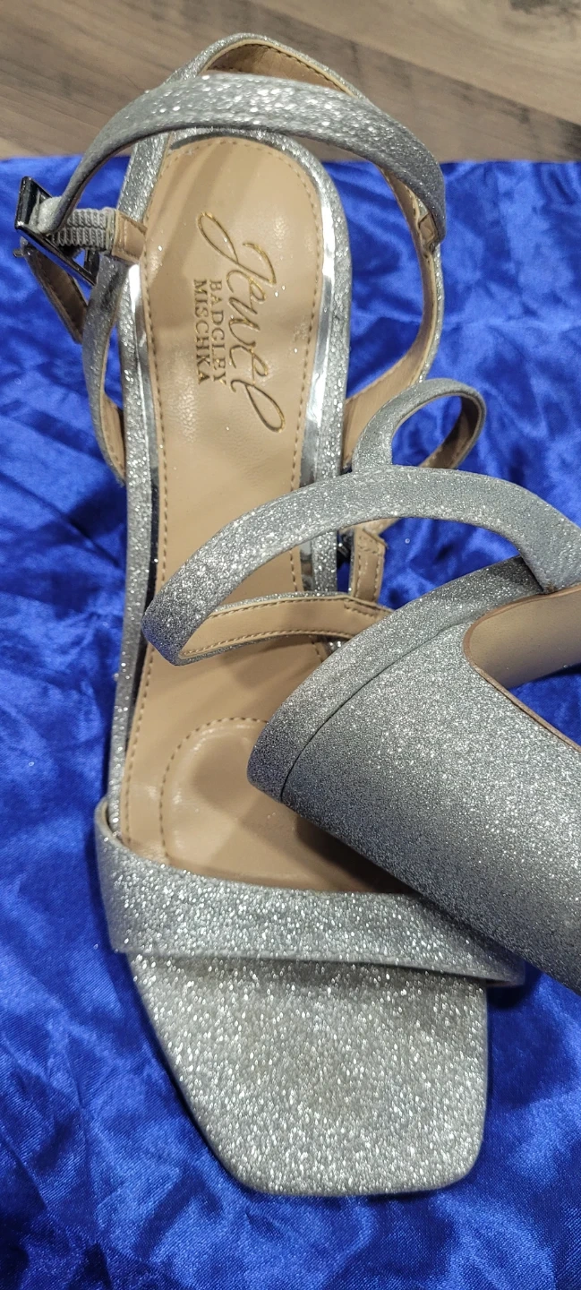 Selling a pair of Jewel Badgley Mischka heels in a lovely silver colour! They're in great condition and are a size 5.5 US. Perfect for a special occasion or adding a bit of sparkle to your outfit