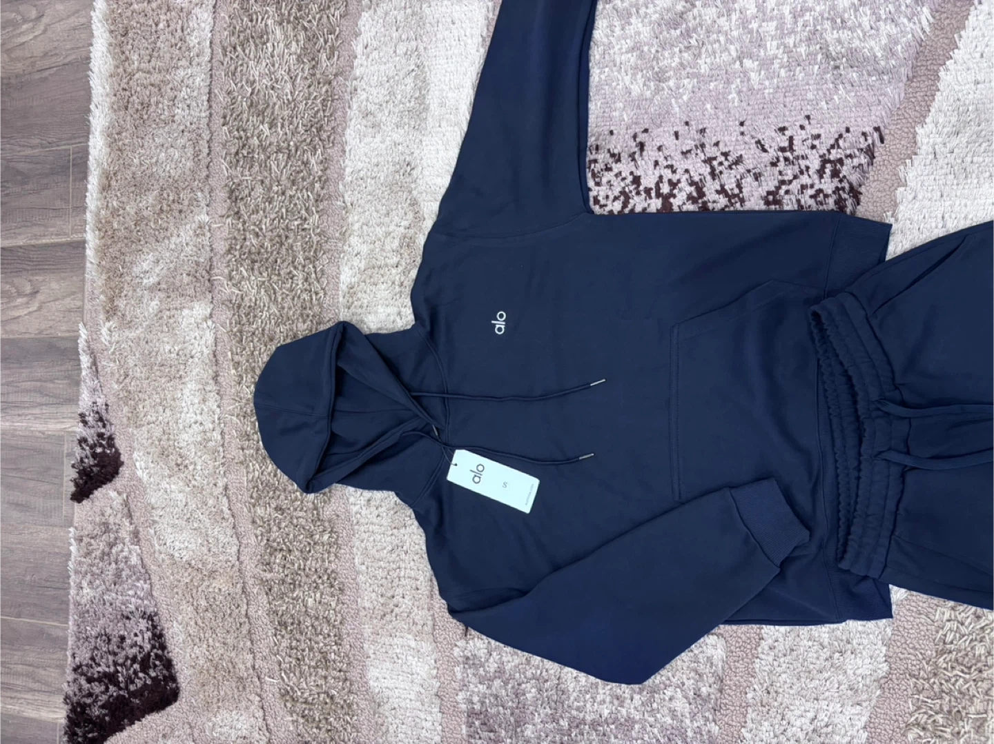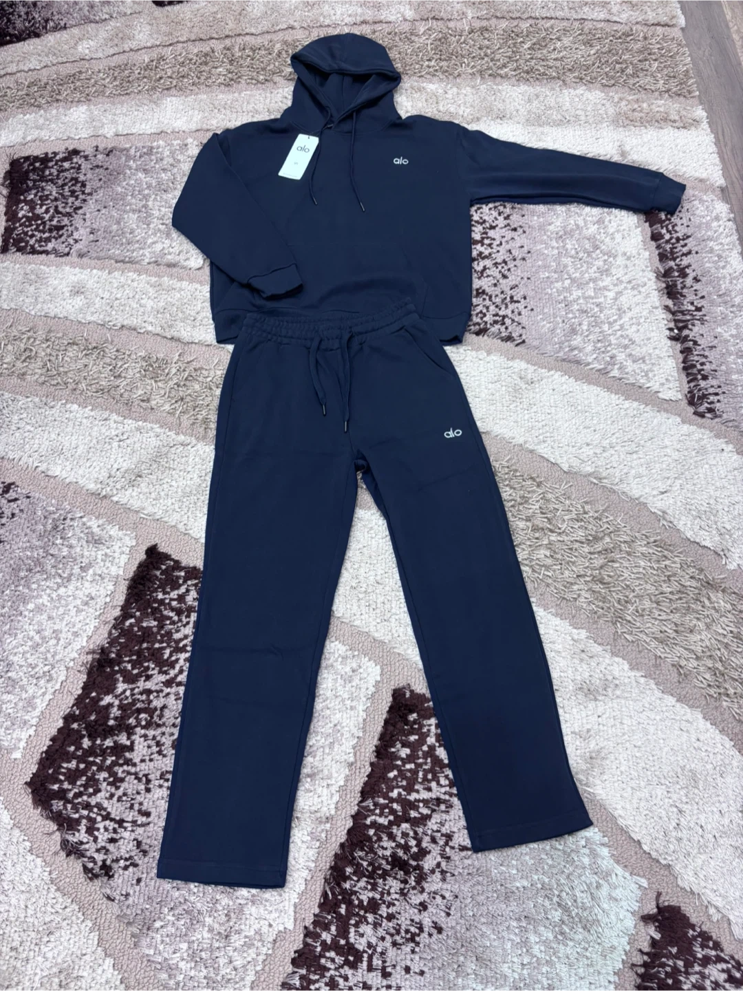 Selling a dark blue alo set in a size S it’s true-to-size. It’s unisexual so it’d be great for both men and women
