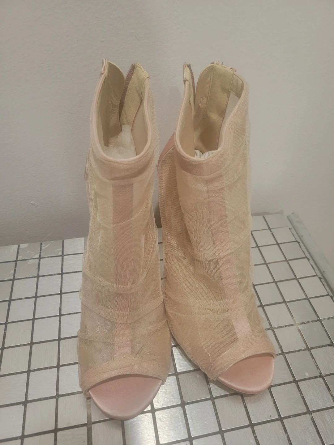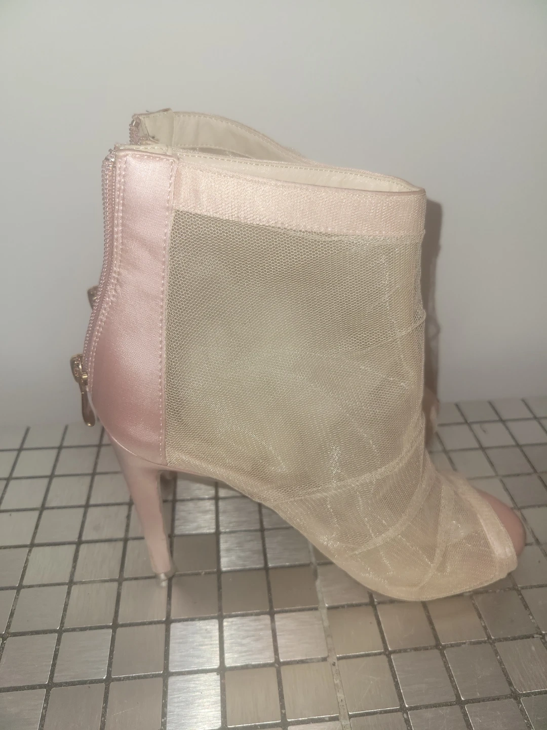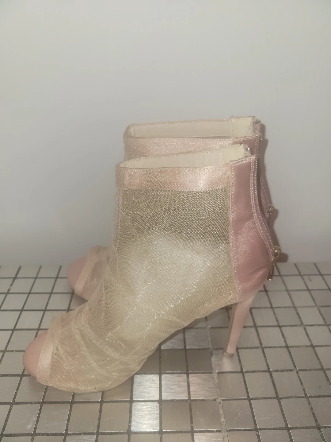These are some cute pink mesh heel booties in a size 9! They have a zipper in the back and are in great condition. Perfect for a night out or a special occasion