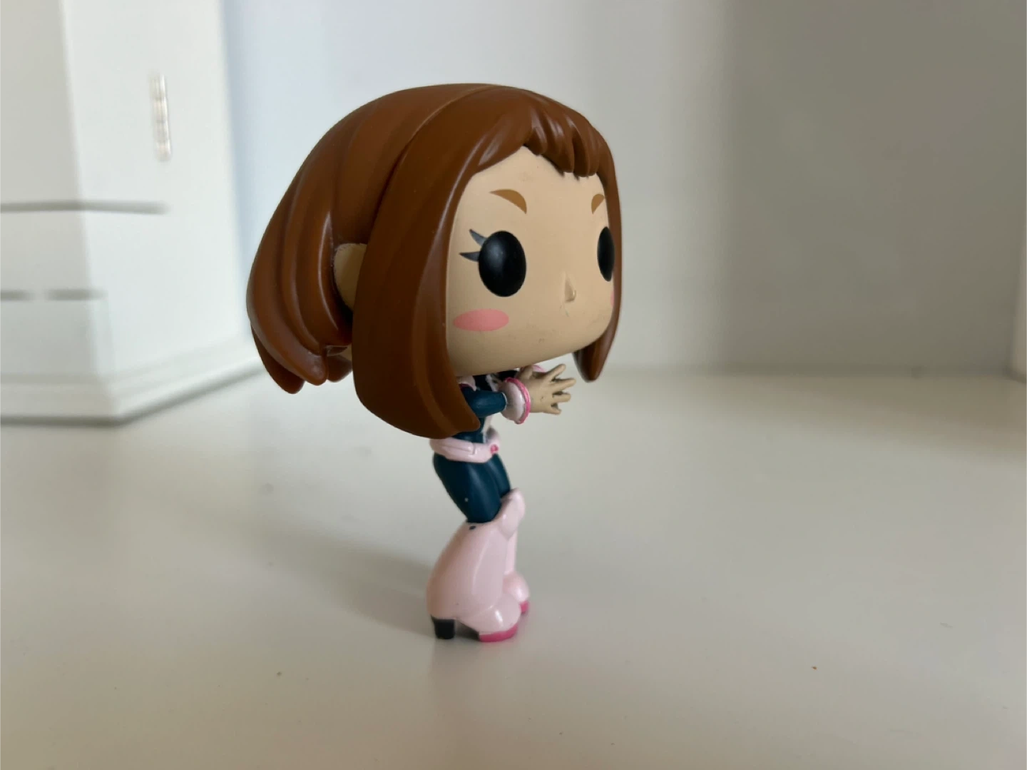 This is a Funko Pop! collectible figure of Ochaco Uraraka from My Hero Academia. It's made of vinyl and stands on its own. A great item for any fan of the series!