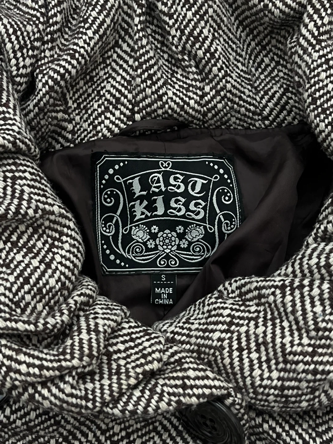 Y2K Last Kiss Herringbone Tweed Peacoat w/ Ruffle Collar | Women