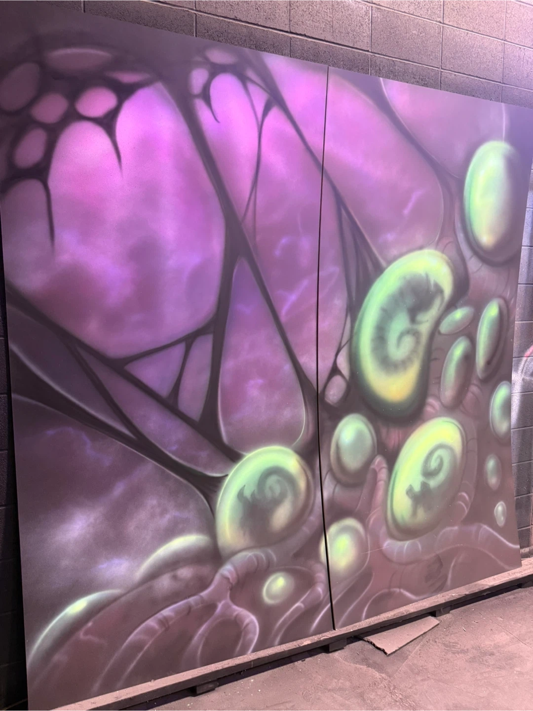 Transform your space with this otherworldly 8’x8’ custom airbrush mural, featuring an alien-themed design that comes alive under UV light. This striking piece is used and sure to add a unique, sci-fi touch to any room, studio, or creative space. Comparable murals on Kijiji are going for $1000 - $2,000. I'm pricing it at $1,200 due to the incredible artistry and the UV-reactive elements. Keep an eye out; you never know what cosmic treasures might surface! If the ad's still orbiting, the mural is available for a new home. Be the talk of all your friends With this one of a kind mural Pics don’t do it justice especially in black light Grab it while you can Won’t be another one like it Message to arrange Pick up south side 2-4’x8’ pieces Bring truck to load