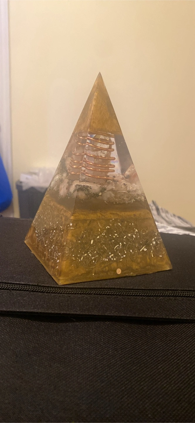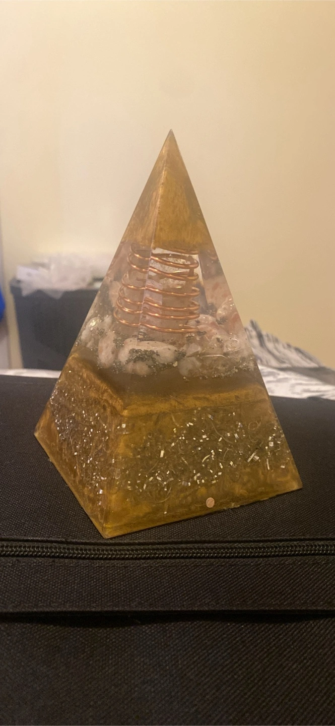 Concentrating the strength of the Solar Plexus mineral trinity, this orgonite stands out for its energizing power of activation and attraction of the energies of abundance, prosperity and success. The perfect alchemy of Citrine as a manifestation agent, personal will, mental clarity, creativity. Pyrite enhancing male energy, manifestation, action, vitality, willpower, creativity, confidence and the True Sun Stone activating Leadership, Benevolence, Strength, Abundance of Blessings and Prosperity.