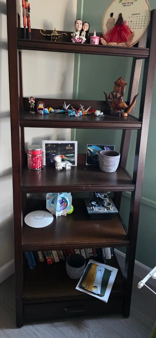 Selling a ladder shelf bookcase. It's in good condition and provides a stylish way to display your books and decor